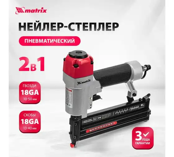 Пневматический нейлер-степлер с регулировкой глубины MATRIX 2 в 1 57428