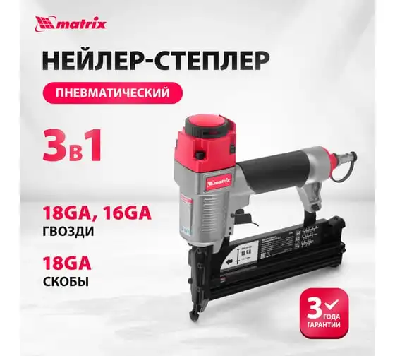 Пневматический нейлер-степлер с регулировкой глубины MATRIX 3 в 1 57427