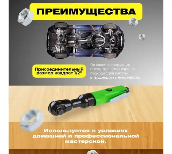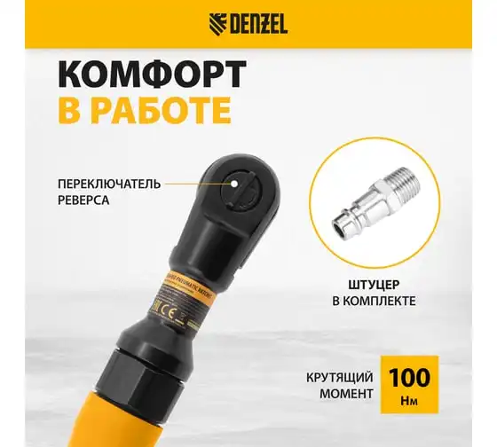 Усиленная пневмотрещотка Denzel RP100 1/2, 160 об/мин, 100 Нм 57475