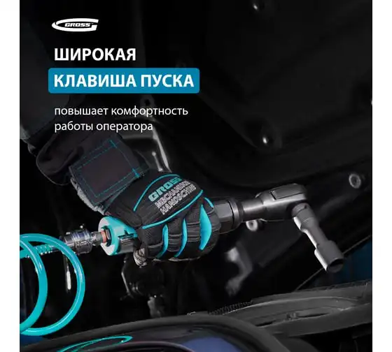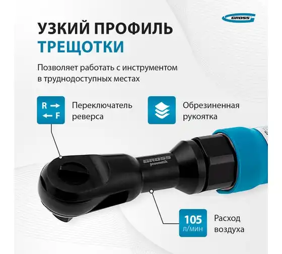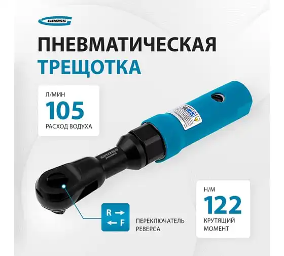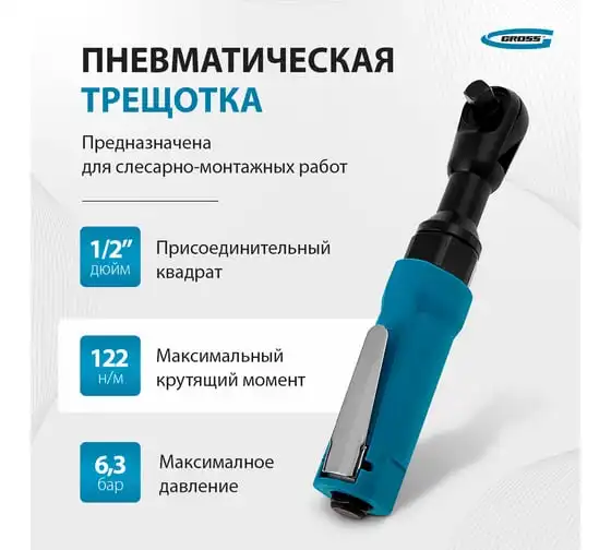 Трещотка пневматическая GROSS G120, 1/2", 122Нм, 160 об/мин 57446