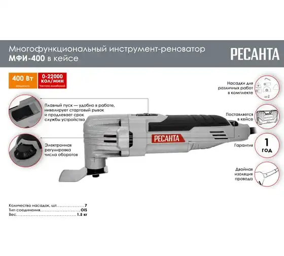 Многофункциональный инструмент-реноватор Ресанта МФИ-400 в кейсе 75/4/2