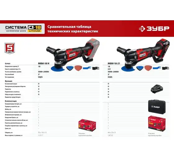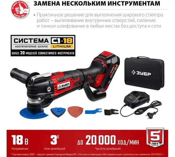 Реноватор ЗУБР 18 В, 1 АКБ (2 Ач), набор насадок, сумка МФИ-18-21