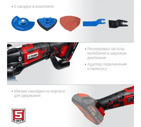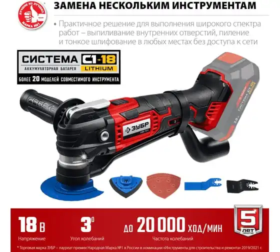 Реноватор ЗУБР 18 В, без АКБ, набор насадок МФИ-18 Н