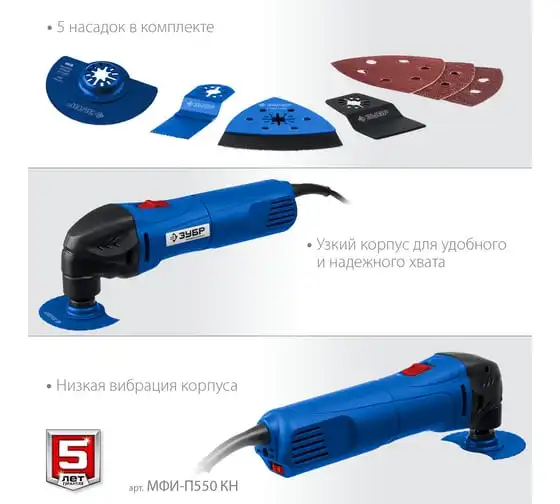 Реноватор с набором насадок ЗУБР Профессионал 550 Вт, кейс МФИ-П550 КН