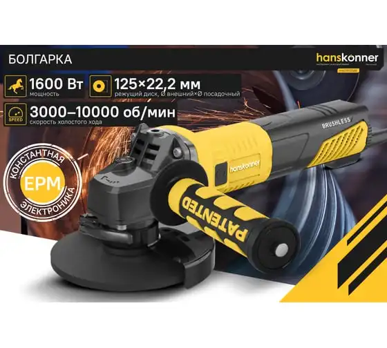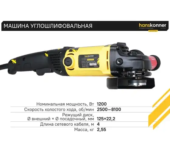 Болгарка (УШМ) Hanskonner HAG16125BE