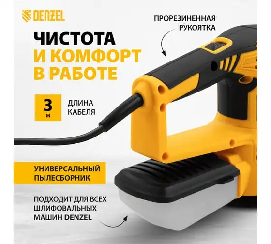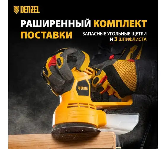 Эксцентриковая шлифовальная машина Denzel EPG125, 125 мм, 9000 об/мин, 5 мм, 113 л/мин 57492