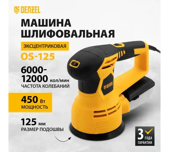 Шлифовальная эксцентриковая машина DENZEL OS-125 27601