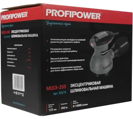 Эксцентриковая шлифовальная машина Profipower МШЭ-350 (до 14000 об/мин, диск 125 мм, кабель 2м, в коробке) E0273