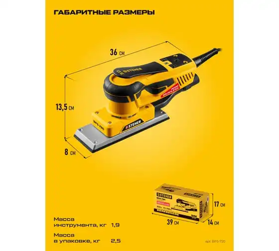 Бесщеточная плоскошлифовальная машина STEHER 70x198 мм, 300 Вт, 3 мм, BPS-720
