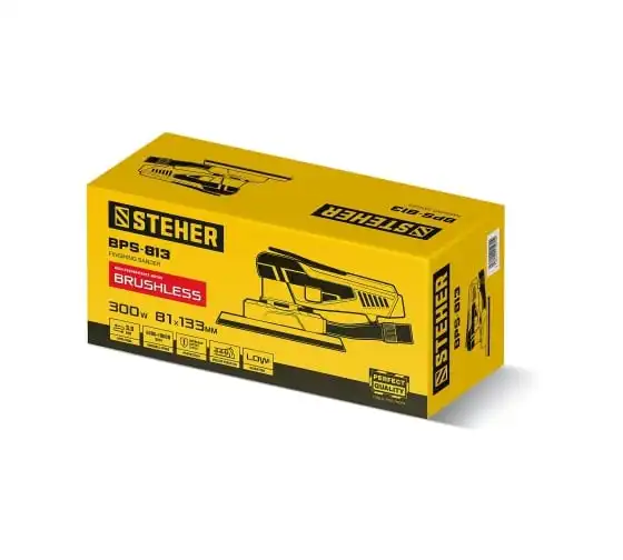 Бесщеточная плоскошлифовальная машина STEHER 81x133 мм, 300 Вт, 3 мм, BPS-813