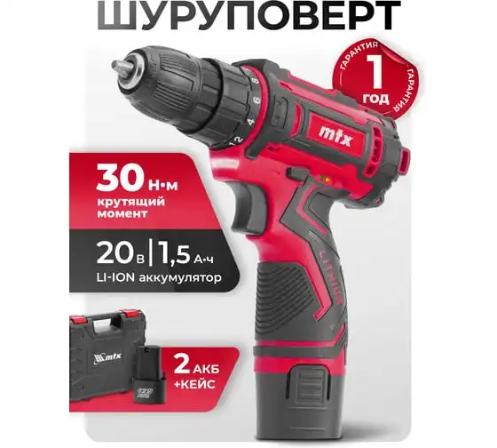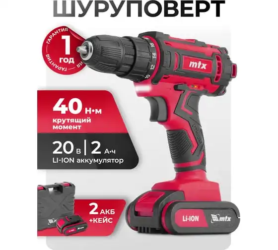 Дрель-шуруповерт аккумуляторная MTX CDS-20, Li-Ion, 20 В// 26186
