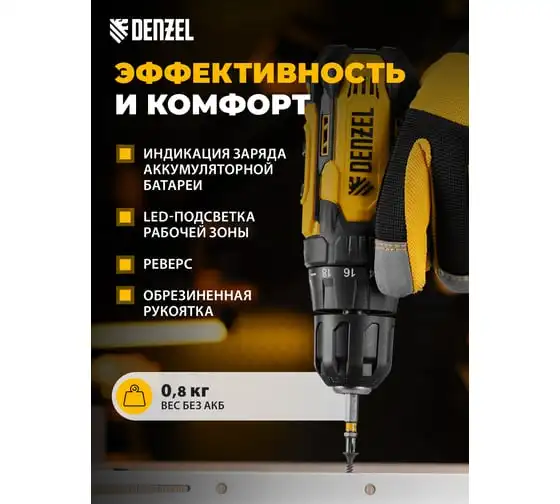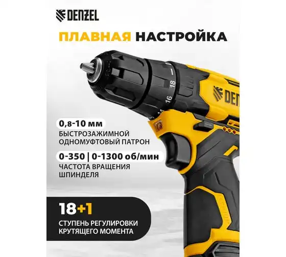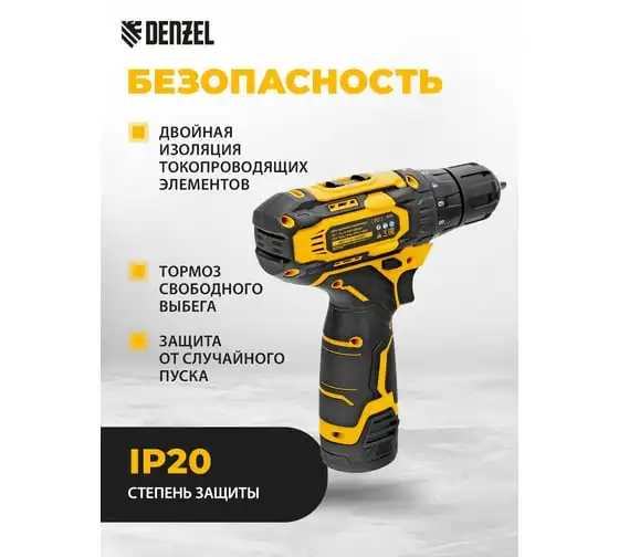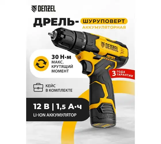 Дрель-шуруповерт аккумуляторная Denzel CDQ-12, Li-Ion, 12 В 26106