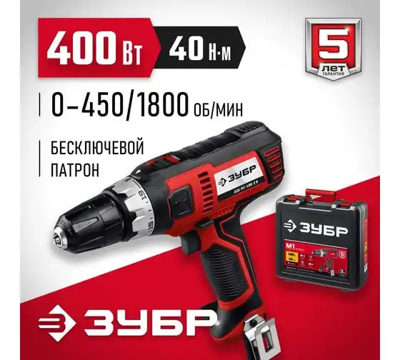 Сетевая дрель-шуруповерт ЗУБР ДШ-М1-400-2 К