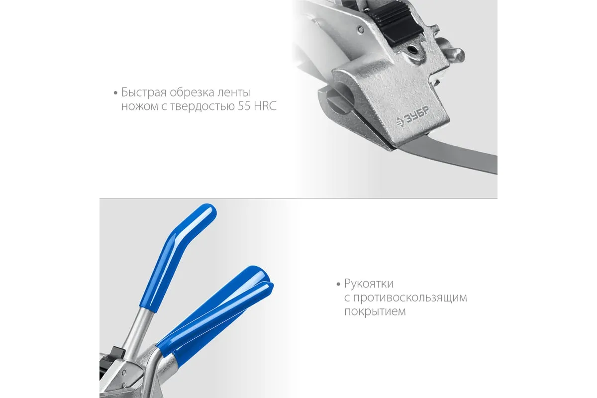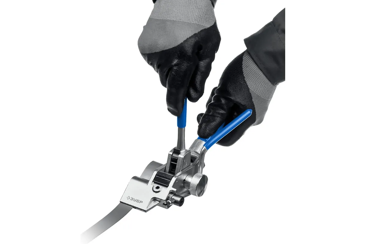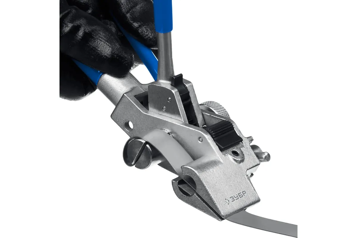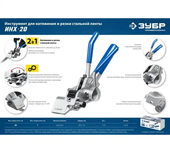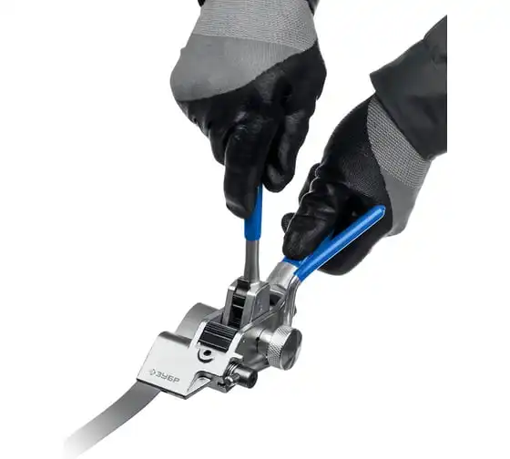 Инструмент для натяжения и резки стальной ленты ЗУБР ИНХ-20 22624 предназначен для натяжения стальной ленты на опорах ВЛИ и крепежа тары. Лезвия выполнено из инструментальной стали и закалены токами высокой частоты для увеличения срока службы инструмента.