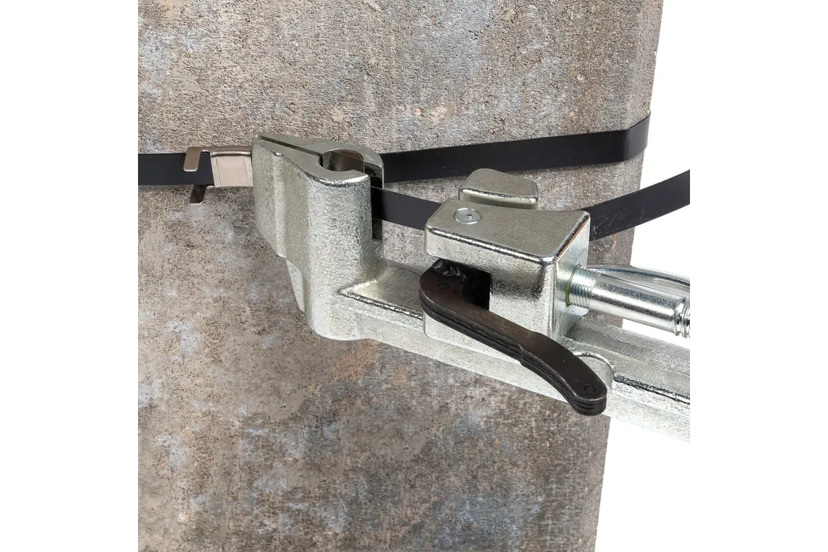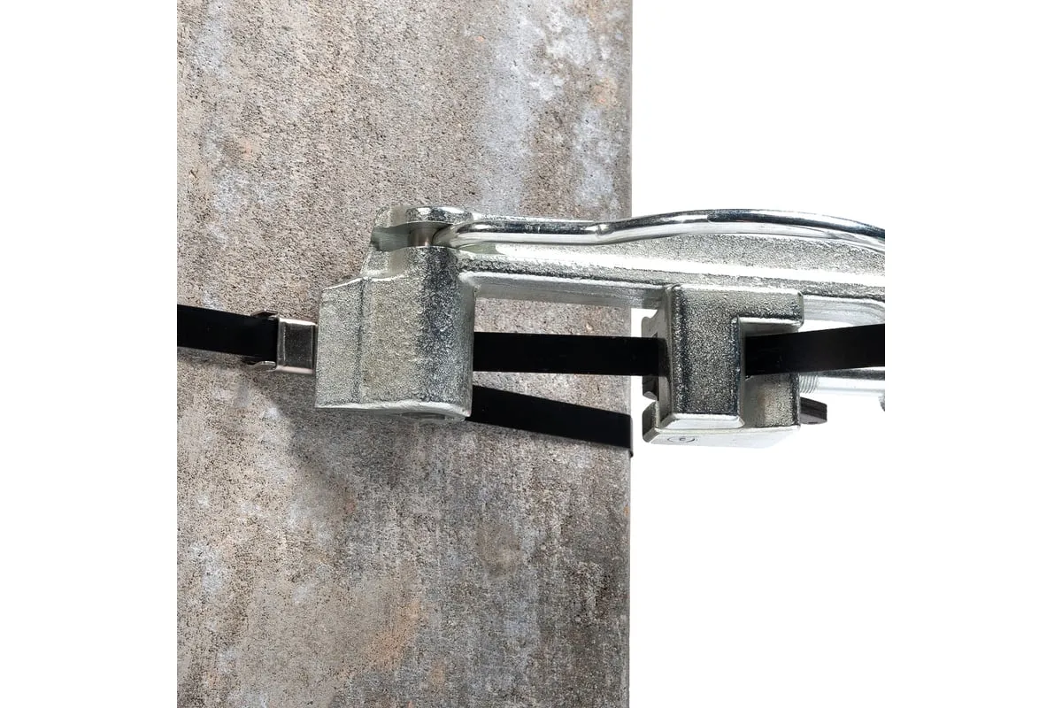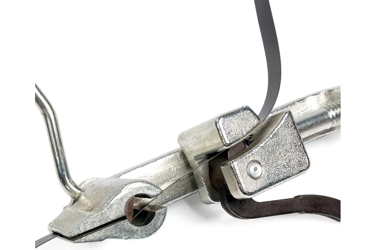 Инструмент для натяжения ленты на опорах КВТ ИН-20 63026 является простым и удобным в применении приспособлением, который сочетает в себе две функции: натяжение и обрезку ленты из нержавеющей стали при монтаже кронштейнов на опорах воздушной линии электропередачи напряжением до 1 кВ с применением самонесущих изолированных проводов. Инструмент оснащен рычагом для захвата и фиксации ленты, при отжатии которого происходит ее резка специальным ножом.