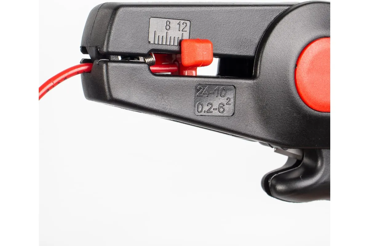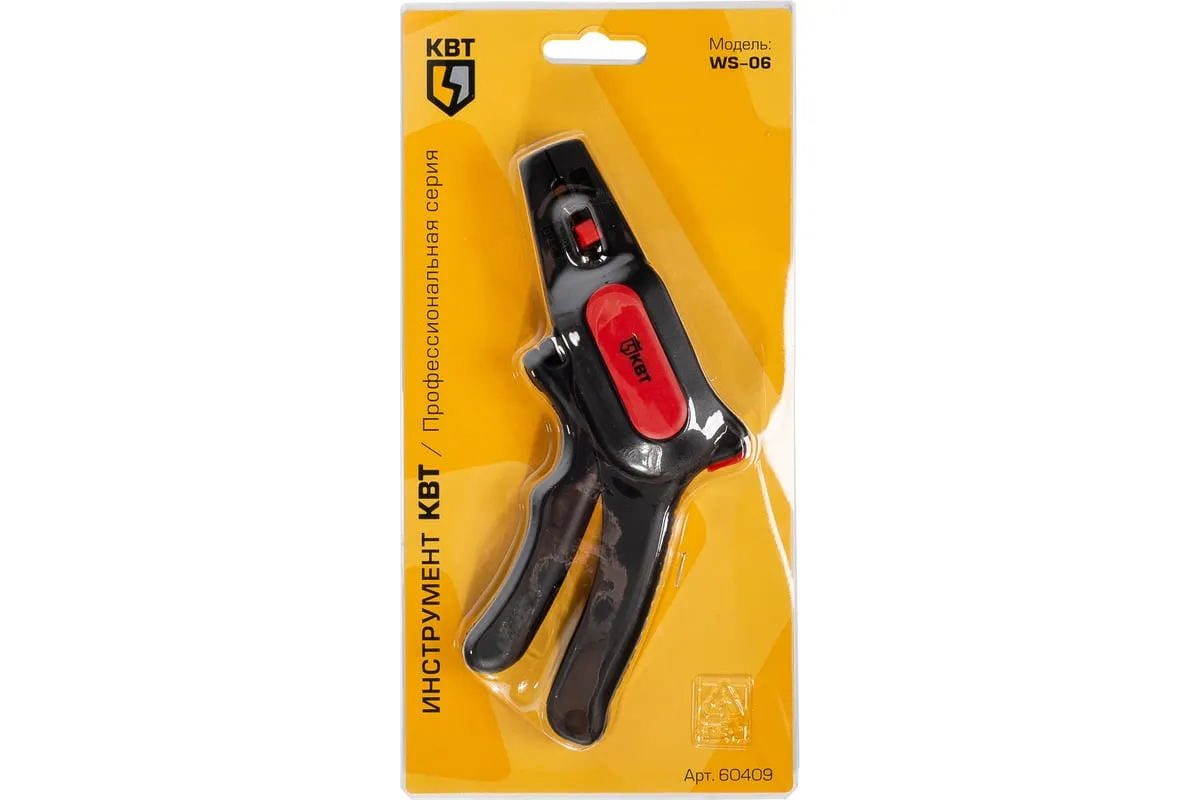 Инструмент для снятия изоляции КВТ WS-06 60409 изготовлен из стекловолокна, что придает легкость и прочность конструкции. Данное приспособление служит для зачистки изоляции различных типов, сечением 0.2–6.0 мм2. Инструмент предназначен для работы с моножильными проводами диаметром до 2 мм. Суженные концы клещей позволяют работать в труднодоступных местах. Автоматическая настройка на нужный размер и толщину изоляции провода делают работу максимально комфортной.