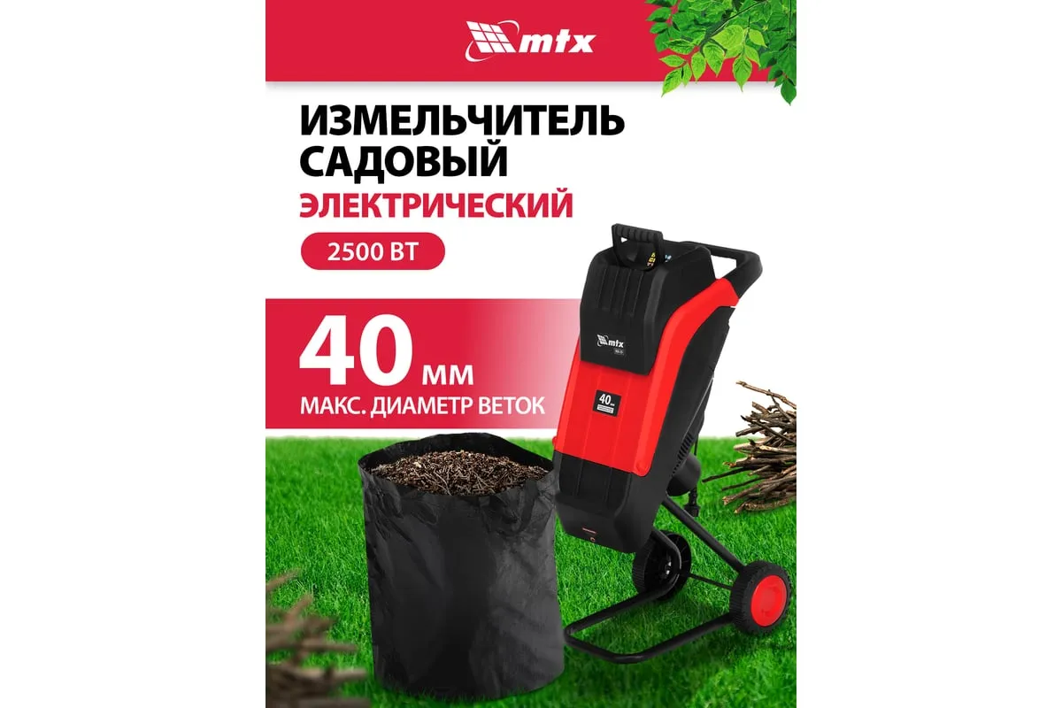 Электрический садовый измельчитель MTX EGS-25 59711 мощностью 2500 Вт предназначен для измельчения веток диаметром до 40 мм. Такой способ облегчает их утилизацию, а также позволяет использовать в качестве удобрения или мульчи. Измельчитель незаменим на дачном участке.