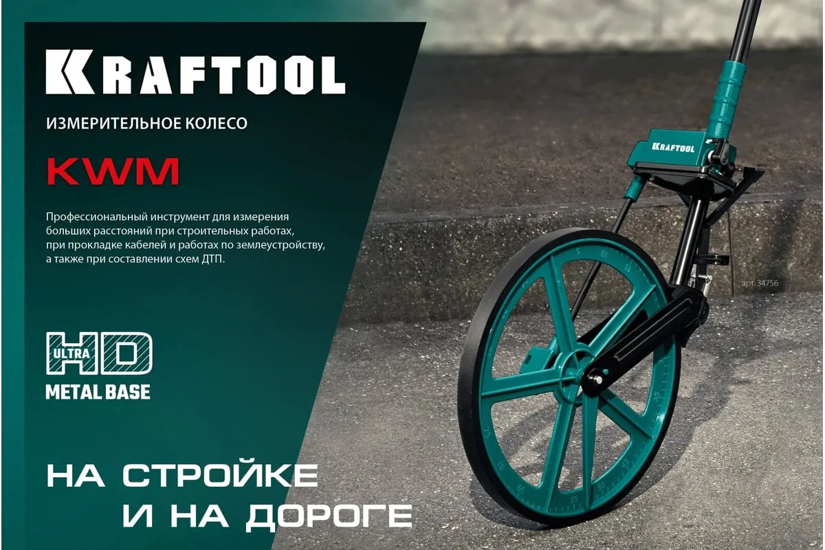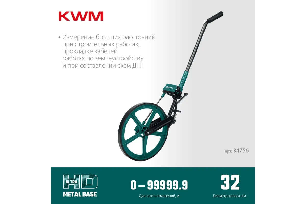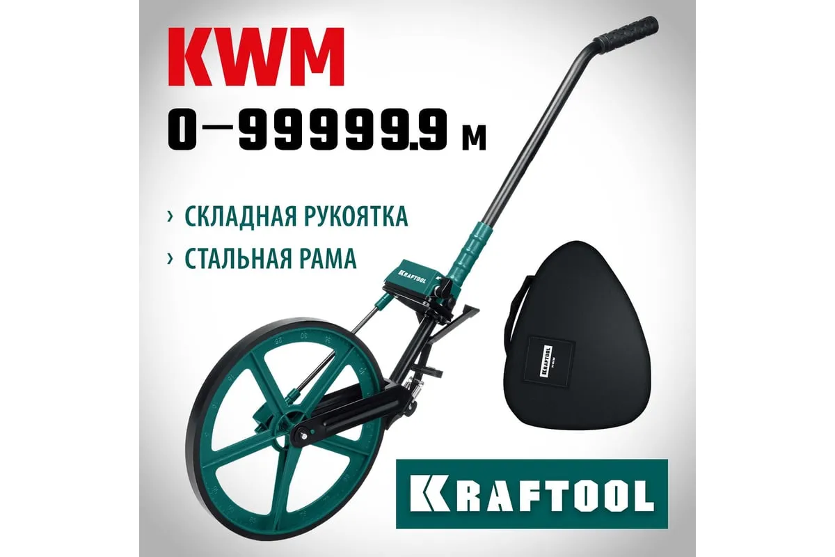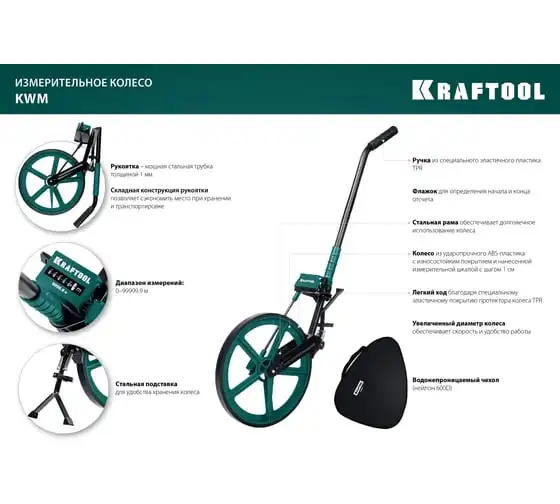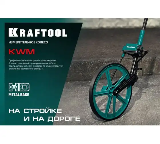 Измерительное колесо 99999 м KRAFTOOL 34756 - профессиональный инструмент для измерения больших расстояний при строительных работах, работах по прокладке кабелей, работах по землеустройству и незаменимо при составлении схем ДТП.
