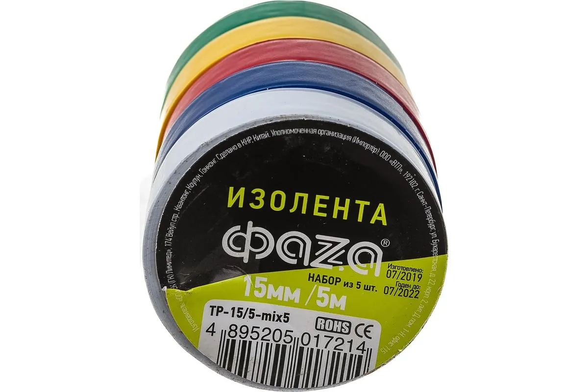 Мини ролики в комплекте – практичный выбор для хозяйственных нужд и для профессионального использования Идеально подходят для маркировки Изоляционная лента ФАZА изготовлена из поливинилхлоридной пленки с нанесенным на одну сторону клеевым слоем Относительное удлинение при разрыве более 185% Электрическая прочность (напряжение пробоя) не менее 5000 В Не поддерживает горение Диапазон рабочих температур: - 50 С … +80 С Диапазон температур монтажа: - 10 С … +80 С Пять цветов в комплекте: синий, белый, красный, желтый, зеленый