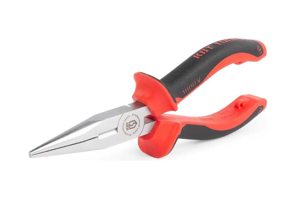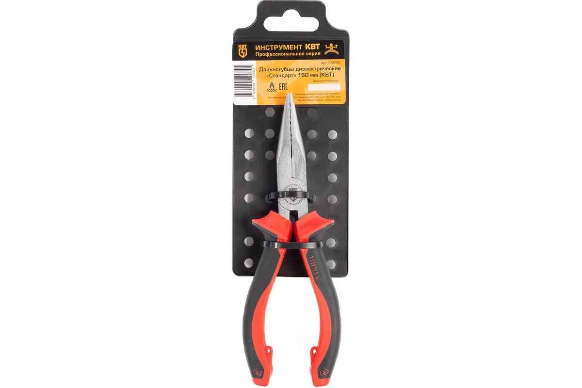 Изолированные длинногубцы 160 мм КВТ 55986 безопасны при работе с оборудованием под напряжением до 1000 В. Рабочая часть изготовлена из инструментальной стали и покрыта никелем для повышения коррозионной стойкости, что гарантирует большой срок службы. Рукоятки из многокомпонентного материала не скользят в ладони. Упоры под пальцы исключают контакт руки с объектом.