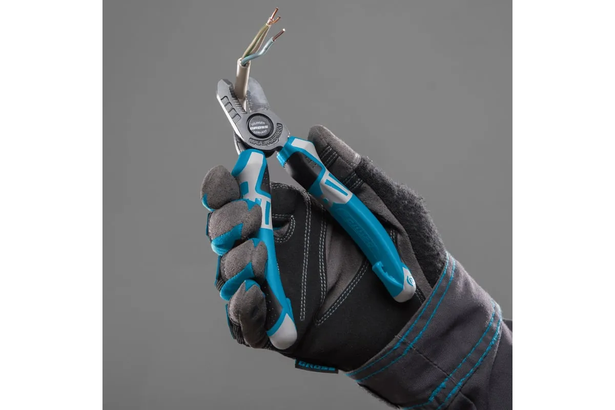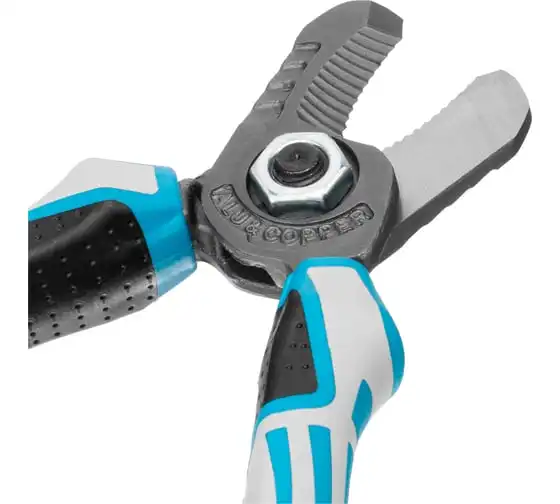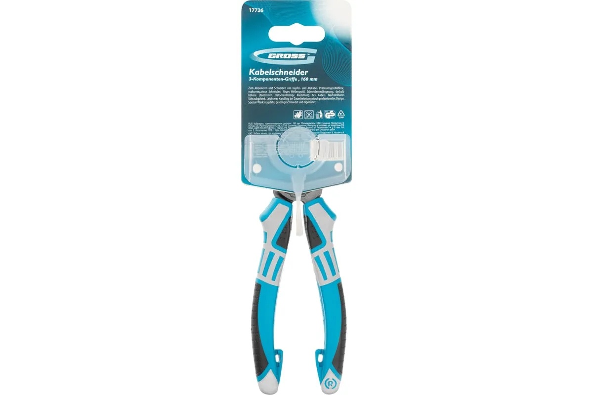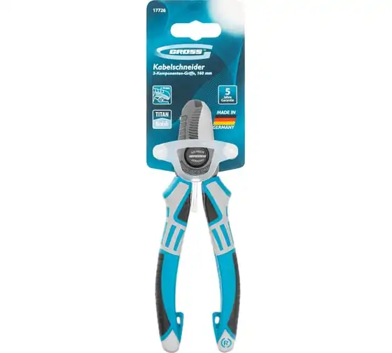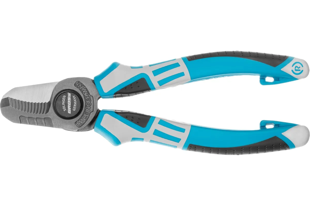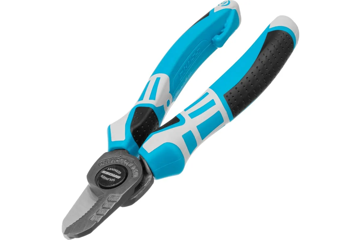 Кабелерез, 160 мм GROSS 17726 применяется для снятия изоляции и перекусывания алюминиевых и медных кабелей. Рекомендуется использовать инструмент для работ с одножильными и многожильными кабелями, имеющими сечение до 50 мм2 или диаметр до 16 мм. Изделие отличается прочностью и удобством в применении. ВАЖНО! Применяется только для МНОГОПРОВОЛОЧНЫХ ЖИЛ! Рабочая часть выполнена из стали и имеет защитное антикоррозийное покрытие. Эргономичные трехкомпонентные рукоятки не скользят в руке. Наличие закругленного профиля режущих кромок с зубцами увеличивает эффективность реза и исключает выскальзывание кабеля. Инструмент не предназначен для работ с холоднотянутыми медными проводами, алюминиевыми сплавами и стальной проволокой.