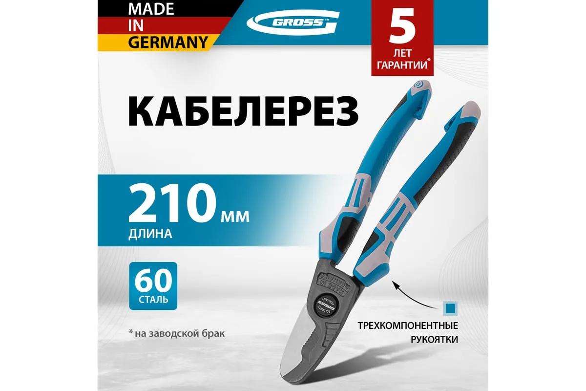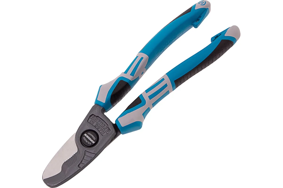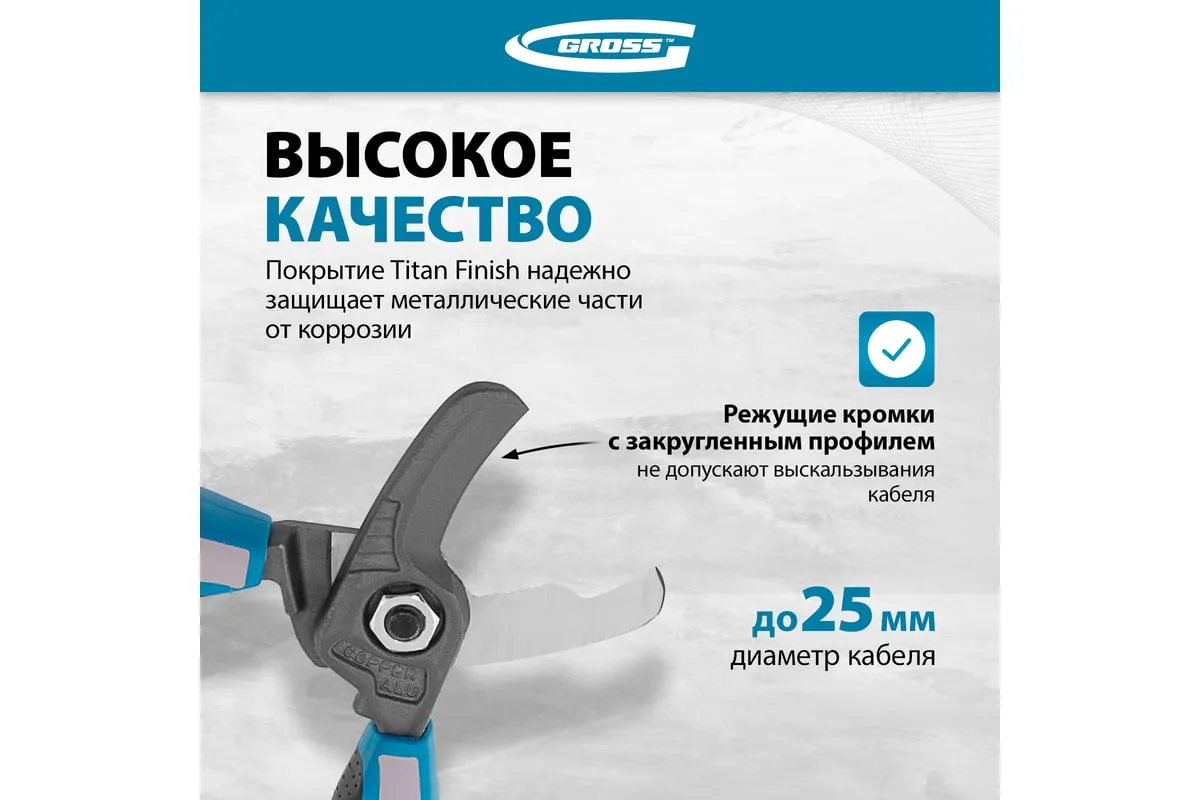 Кабелерез, 210 мм GROSS 17727 предназначен для электромонтажных работ, а именно, для снятия изоляции и перерезания кабелей из меди и алюминия. Изделие рекомендуется использовать с одножильным или многожильным кабелем, имеющим диаметр до 25 мм или сечение до 70 мм2. ВАЖНО! Применяется только для МНОГОПРОВОЛОЧНЫХ ЖИЛ! Стальная рабочая часть с защитным антикоррозийным покрытием отличается устойчивостью к износу и повышенной прочностью. Трехкомпонентные рукоятки имеют эргономичную форму и не скользят в руке. Инструмент не подходит для работы с алюминиевыми сплавами, стальной проволокой и холоднотянутыми медными проводами.