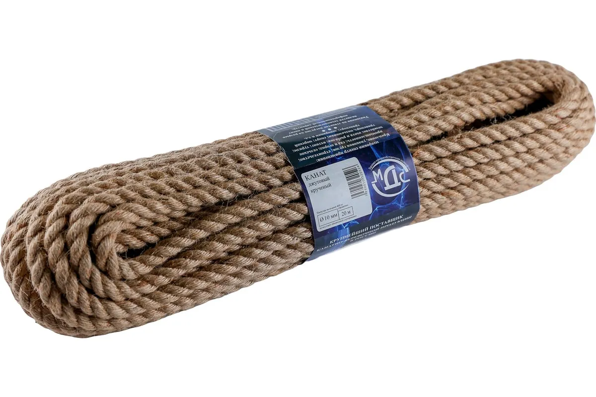 Канат джутовый ТПК МДС 10мм 20м 7930050320526 изготавливается только из натурального волокна первого сорта, крутка на этом канате используется только плотная, что придает канату эстетический и презентабельный вид, благодаря такой крутке, канат имеет большую прочность на разрыв. Джутовый канат можно использовать для декорации и отделки швов в срубовых домах, так же канат пользуется большой популярностью у домашних питомцев в виде когте точек или декоративных домиков. Канат из джутового волокна применяется как в промышленности, в сельском хозяйстве, в быту, так и в деятельности связанной с водой, для швартовки судов.