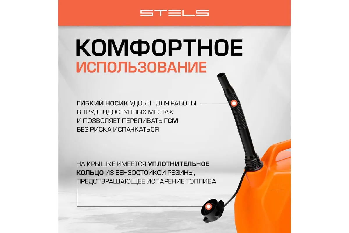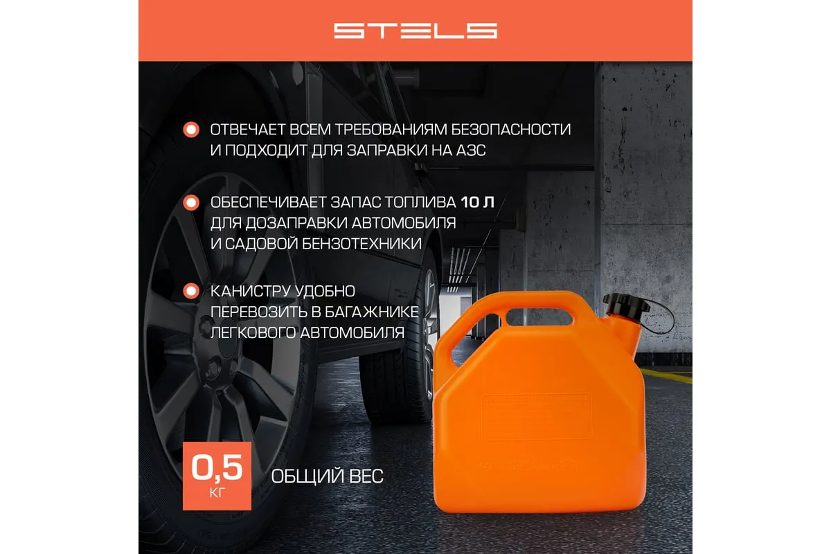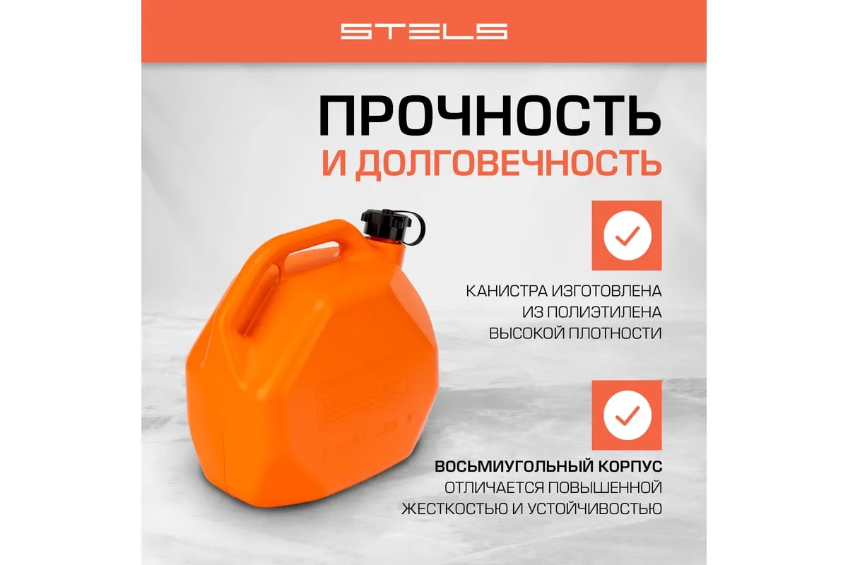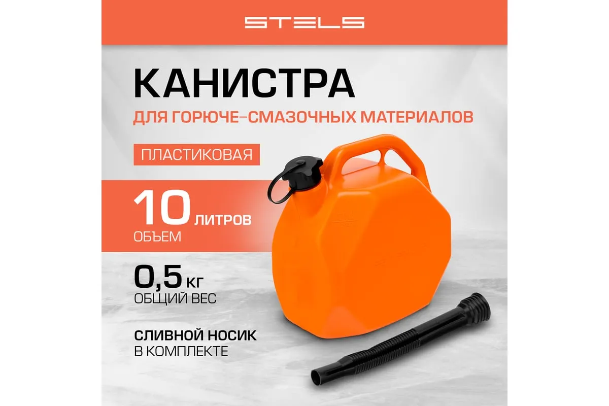 Пластиковая канистра со скошенными углами STELS 53111 объемом 10 литров предназначена для хранения и транспортировки бензина и других горюче-смазочных материалов (ГСМ). Подходит также для обслуживания бензотехники: пил, триммеров, газонокосилок и т.д. Отвечает всем требованиям безопасности и подходит для заправки на АЗС. Компактную канистру удобно перевозить в багажнике легкового автомобиля. Пригодится владельцам авто и дачных участков.
