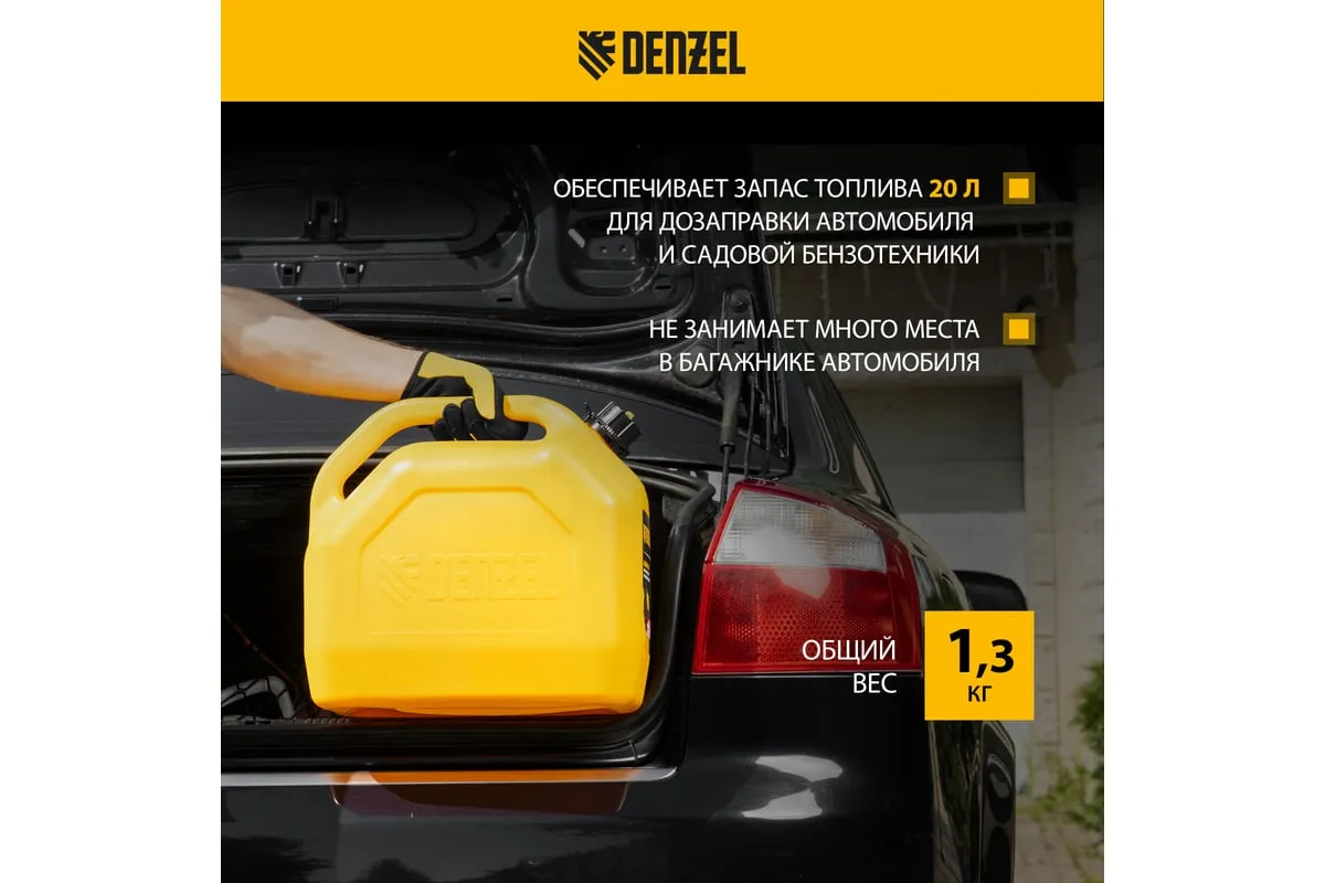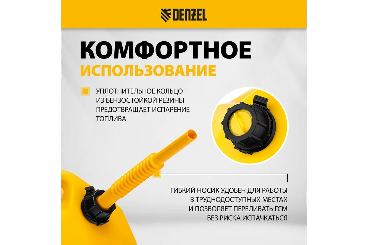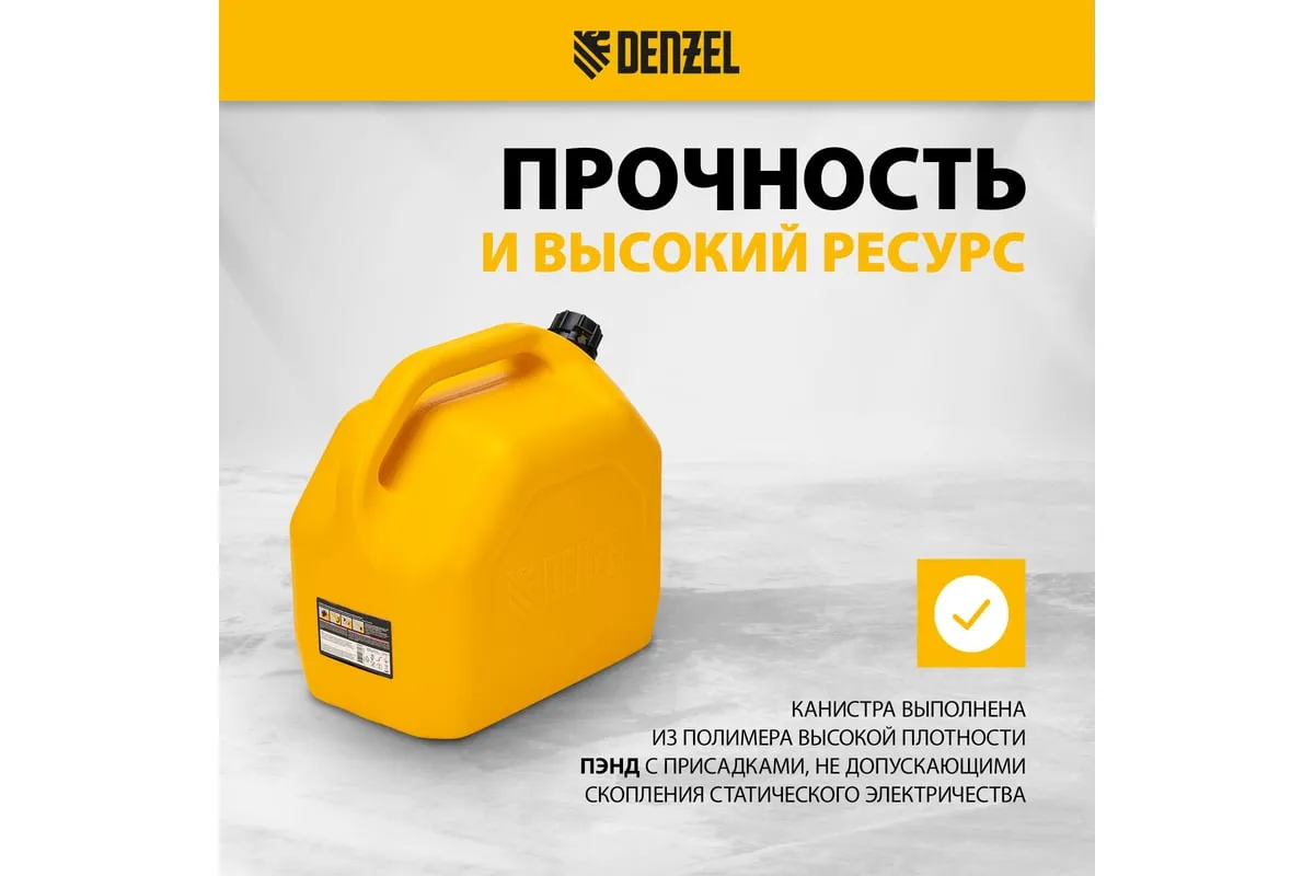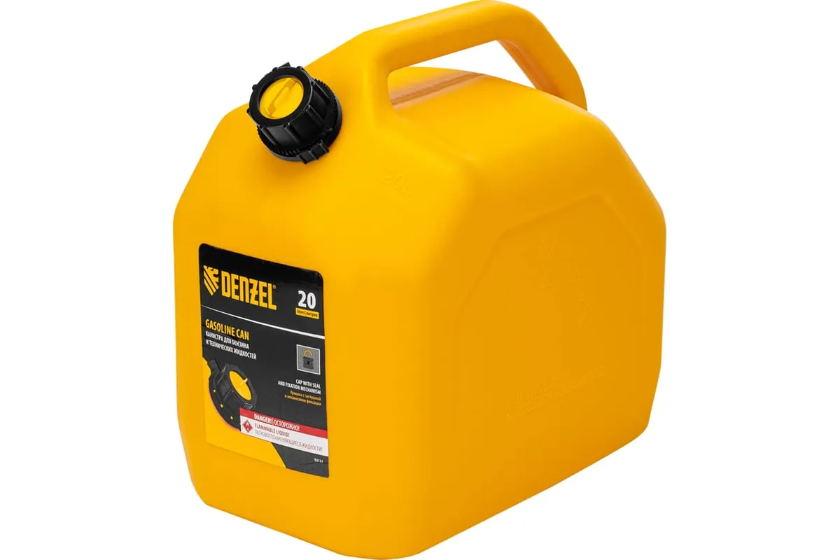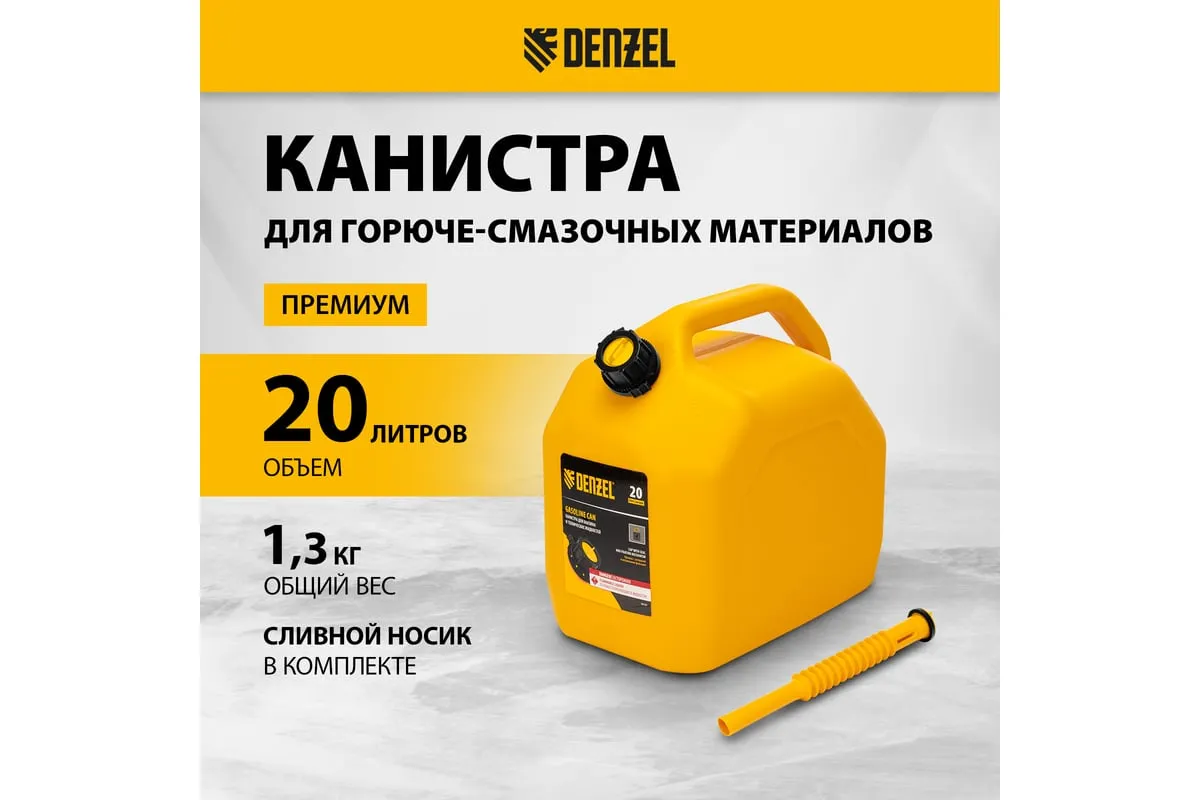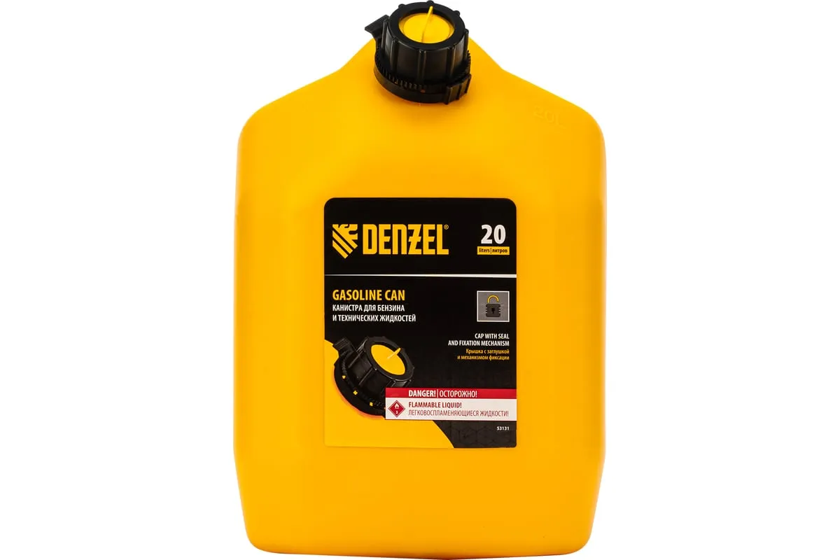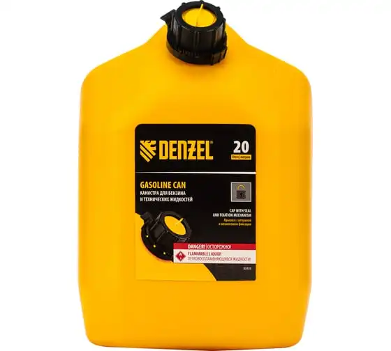 Премиум-канистра DENZEL 53131 объемом 20 л используется для хранения и транспортировки ГСМ. Ее удобно брать в дорогу, а также можно поставить на даче, или в гараже. Канистра пригодится для заправки автомобиля и бензотехники.