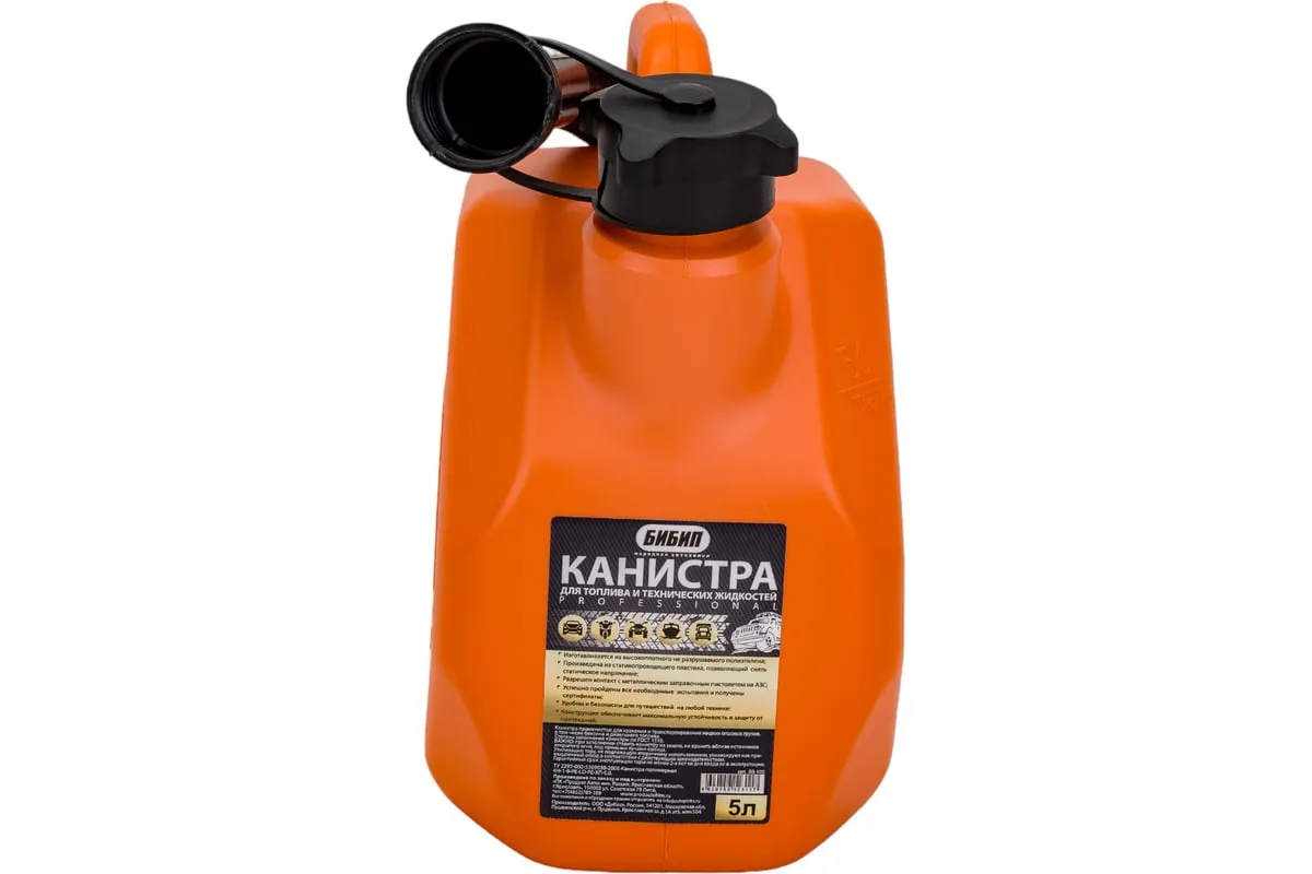 Канистра ГСМ Professional 5 л Бибип BB-100 усиленная с крышкой и лейкой применяется для хранения и транспортирования жидких опасных грузов, в том числе бензина и дизельного топлива.