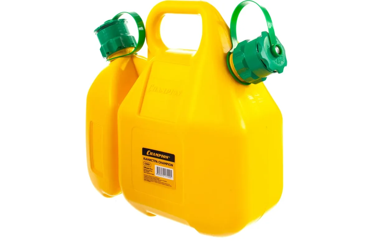 Канистра комбинированная Champion C995 состоит из двух отсеков и предназначена для хранения или транспортировки бензина и масла. Канистра снабжена эффективной защитой от перелива. Если она заполнена, поток бензина автоматически прерывается, и вы можете поднять ее, не проливая топливо. Канистры можно отсоединить друг от друга.
