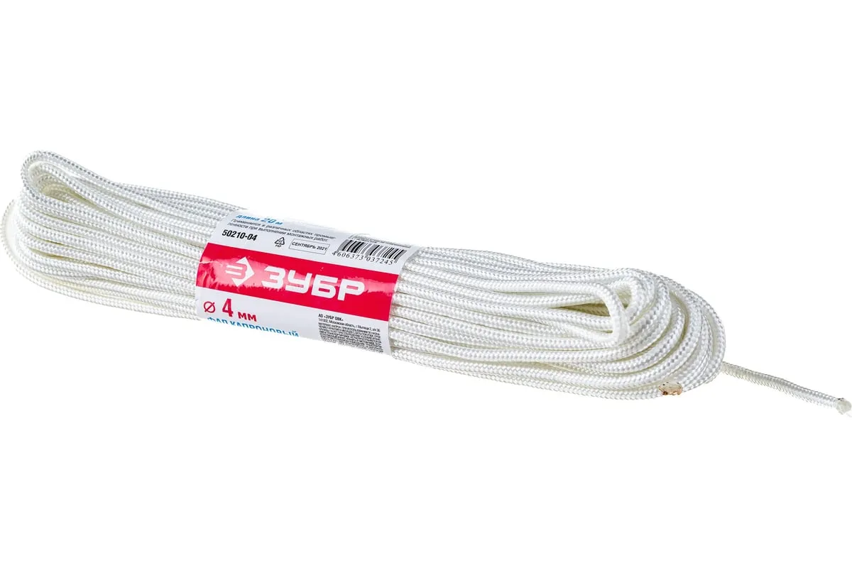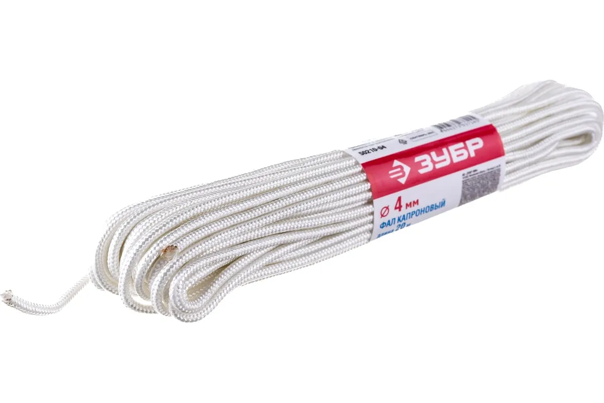 Капроновый фал Зубр 50210-04 используется в производственном процессе, в домашнем быту, сельском хозяйстве и т.д. Материал - капроновые нити, переплетенные между собой для наибольшей прочности при использовании. Характеристики: