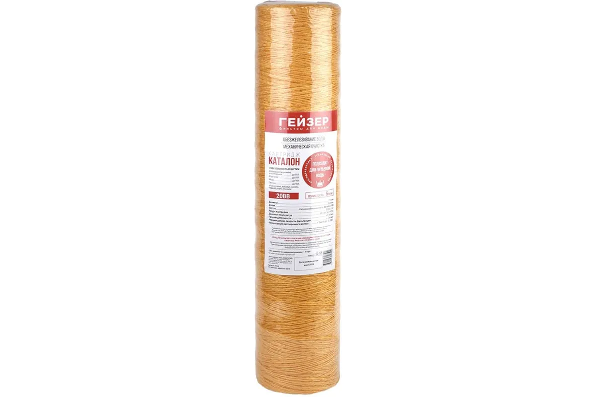 Картридж Гейзер Каталон - 20BB предназначен для обезжелезивания воды и очистки её от механических примесей.