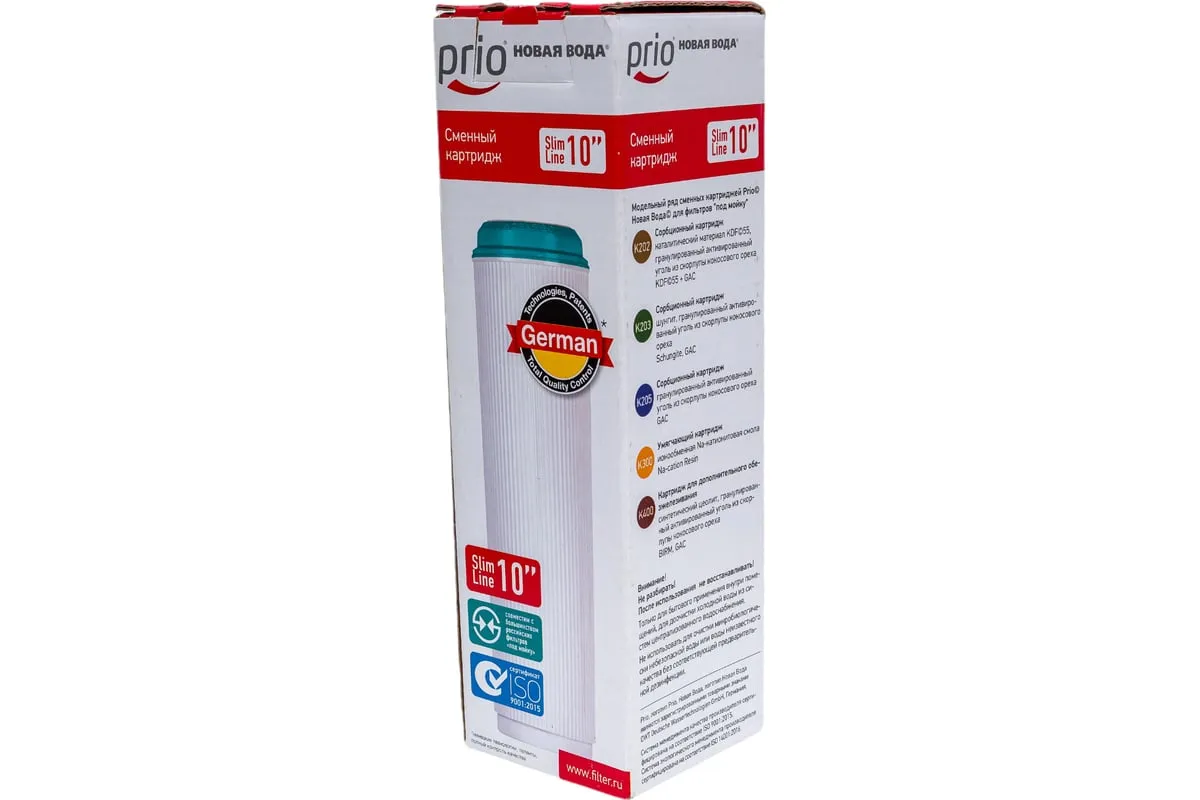 Картридж сорбционный Prio Новая вода К 200 используется в картриджных системах Prio Новая вода. Обеспечивает глубокую очистку воды от хлора, хлорорганических соединений, пестицидов, нефтепродуктов, тяжелых металлов и прочих органических и неорганических соединений, а также устраняет неприятный запах воды и улучшает ее вкус. Картридж изготовлен из прессованного кокосового активированного угля, благодаря чему увеличивается сорбция вредных примесей.