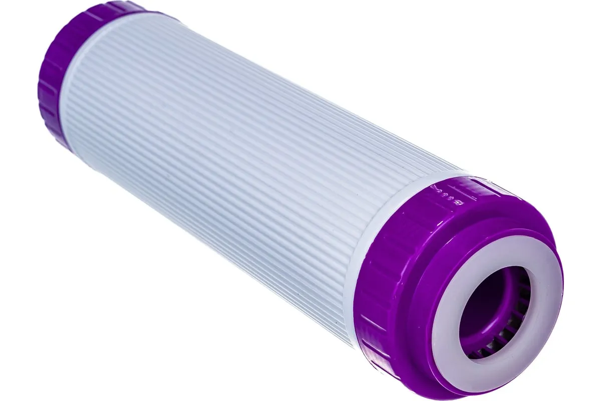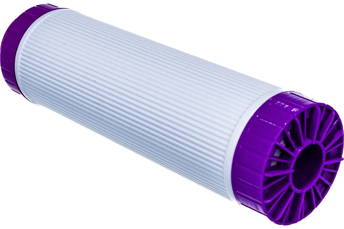 Картридж с мультикомпонентной загрузкой из ионообменных материалов исорбентов для очистки воды отостаточного хлора, органических соединений, железа (при содержании до 2 мг/л) и других вредных примесей.