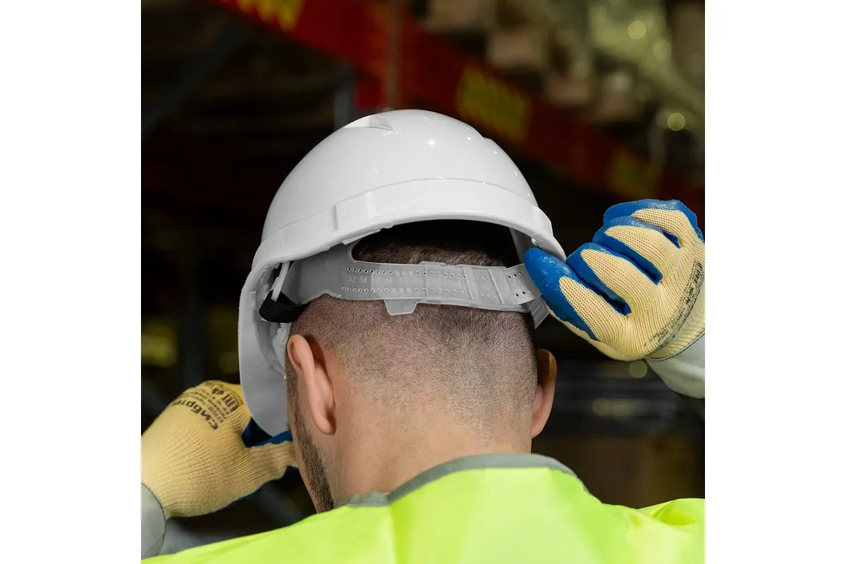 Каска защитная СИБРТЕХ 89114 используется при проведении широкого спектра строительных, монтажных, слесарных и других работ. Главное назначение каски - это защита головы от удара, который может случиться из-за упавшей арматуры или любого тяжелого инструмента. Также каска имеет защитный козырек и предохраняет пользователя от пыли и мусора. В конструкции приспособления предусмотрены отверстия для вентиляции и тканевая вставка для амортизации. Возможна регулировка по размеру от 52 до 66. Имеются слоты под крепление наушников и щитка.Цвет - белый.