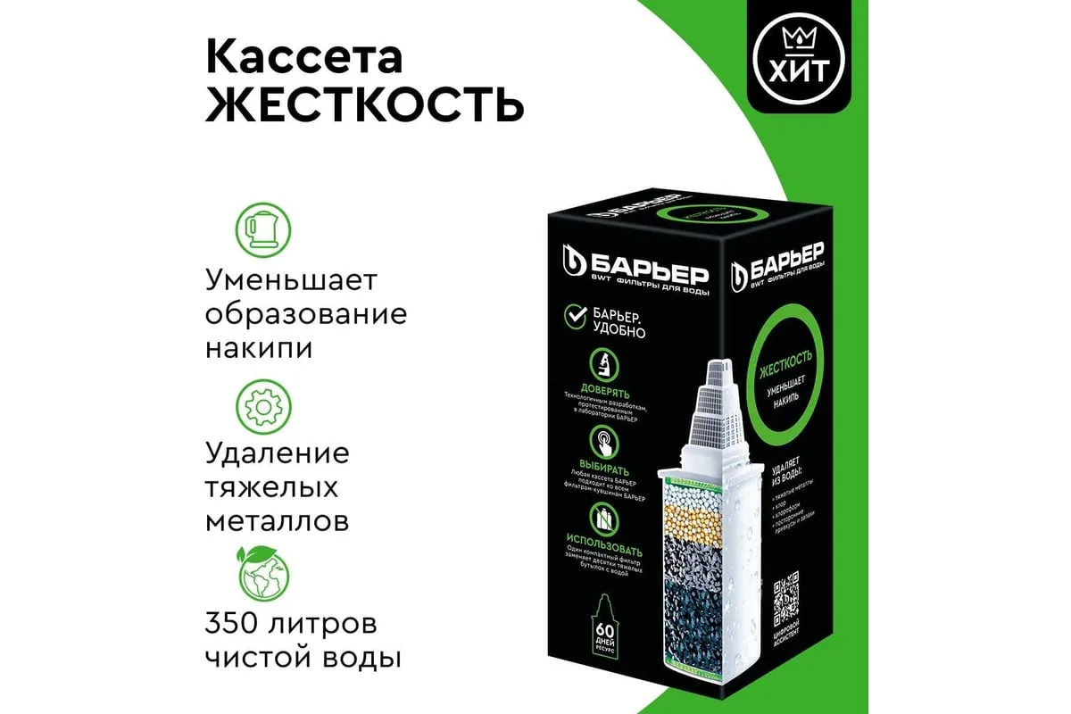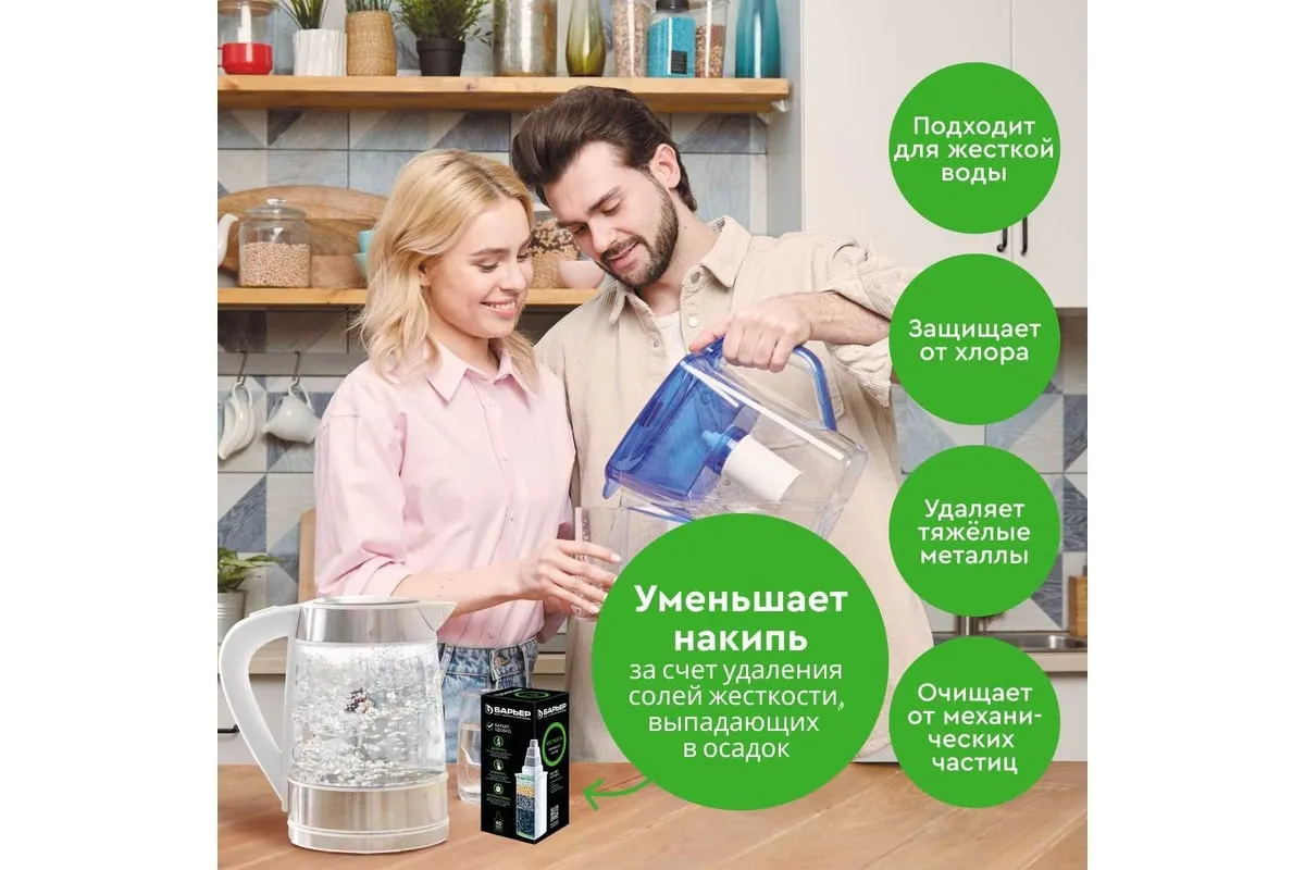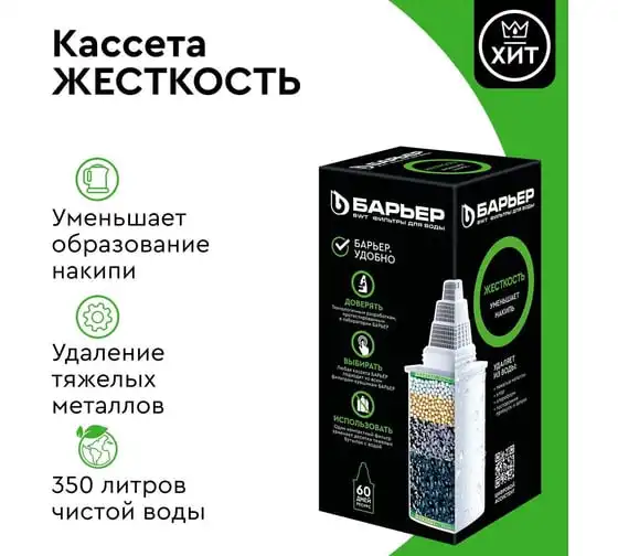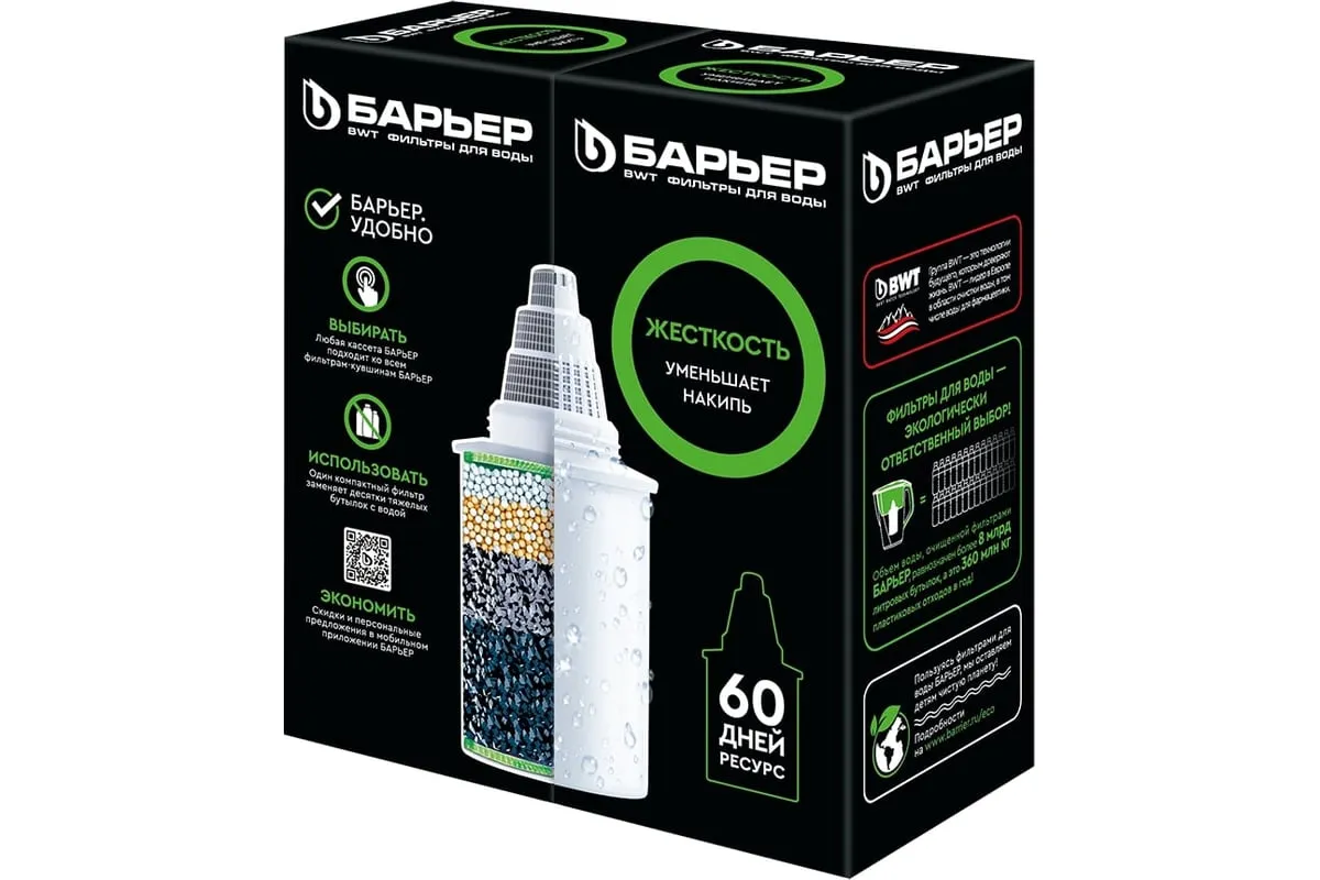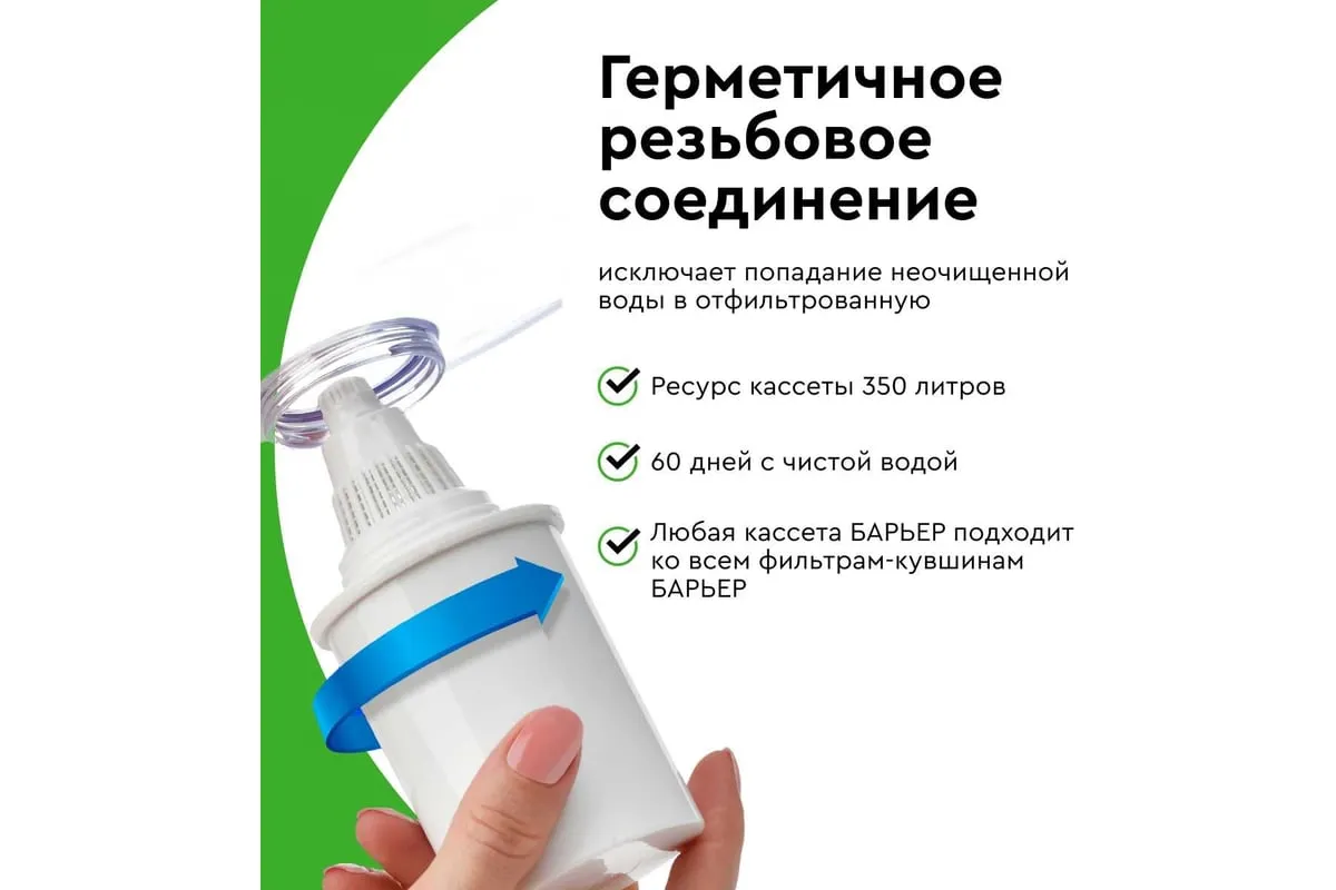 Сменная кассета для фильтров-кувшинов БАРЬЕР Жесткость - это специальная очистка жесткой воды. Позволяет забыть о накипи в чайнике, удаляет хлор и его соединения, тяжелые металлы и другие вредные примеси. Резьбовое соединение надежно фиксирует кассету и не дает попасть нефильтрованной воде в чистую. В упаковке находится одна кассета.