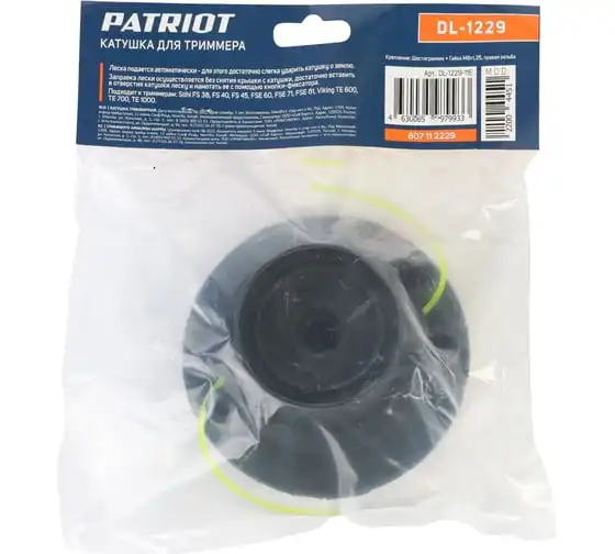 Катушка DL-1229 comfort Patriot (1165) 807112229 подходит к триммерам Stihl FS 38, FS 40, FS 45, FSE 60, FSE 71, FSE 81, Viking TE 600, TE 700, TE 1000.