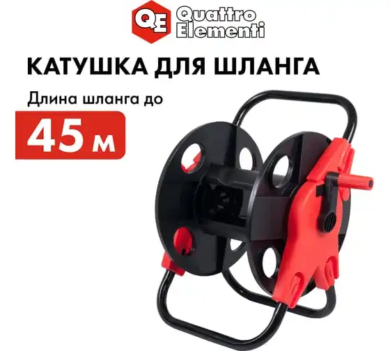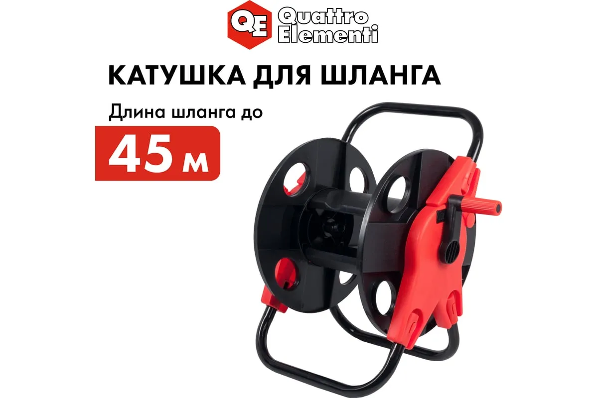 Катушка малая Quattro Elementi 772-180 - принадлежность для хранения и транспортировки садовых шлангов. Шланг легко наматывается на барабан при помощи удобной рукоятки. Небольшой вес катушки значительно облегчает транспортировку шланга. Катушка проста в сборке, не требует для этого использования каких-либо инструментов. Правильное хранение шланга значительно продлевает срок его службы. Не оснащена колесами.