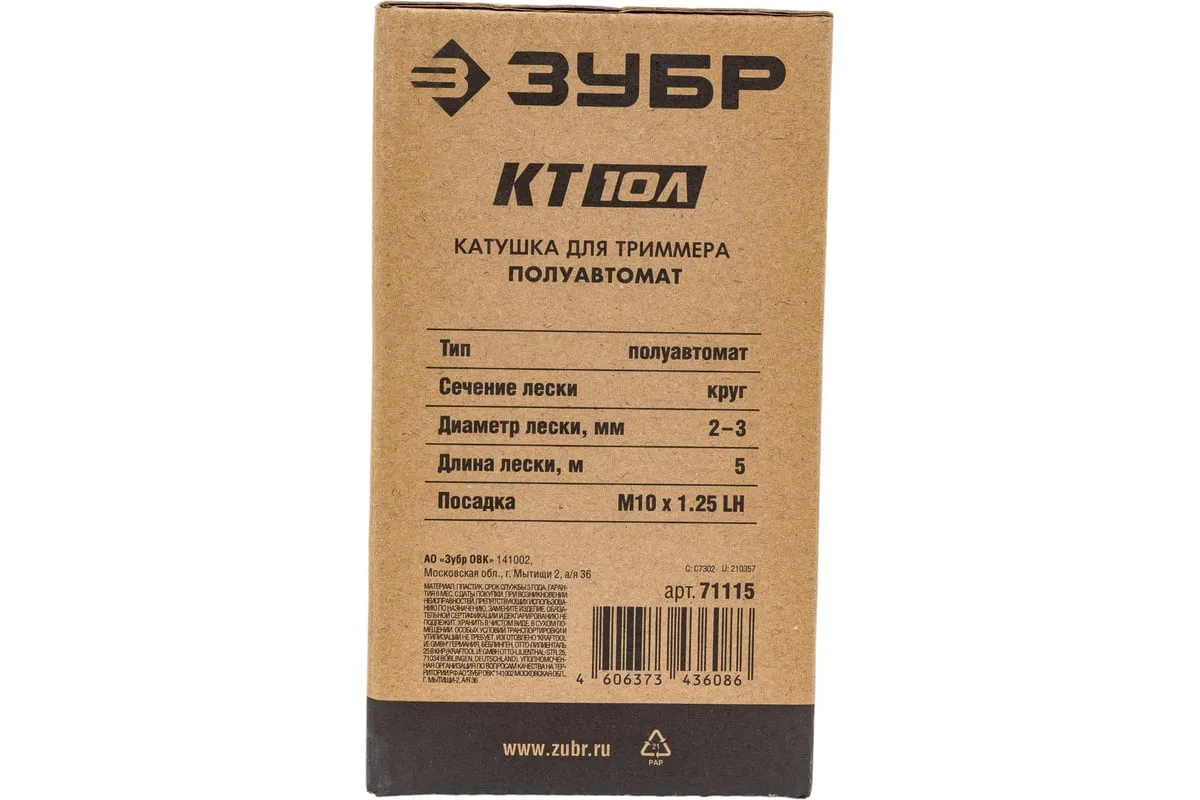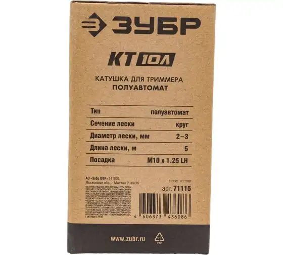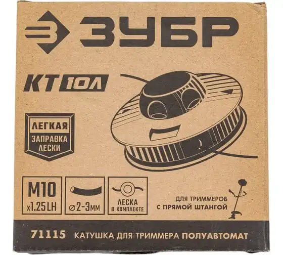 Катушка для триммера ЗУБР КТ-10Л М10x1.25LH 71115 - удобный способ замены лески без разборки, распутывания, заправки и прочих проблем. Для триммеров ЗУБР КРБ-ххх, ЗКРЭ-ххх, КСВ-ххх.