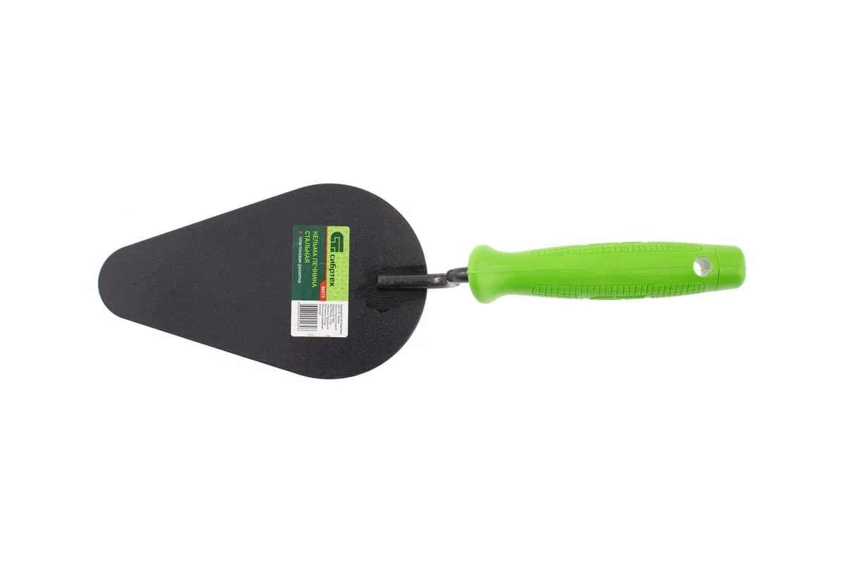 Стальная кельма печника Сибртех 86215 с пластиковой ручкой позволяет осуществить отделочные и строительные работы по укладке плитки или кирпича. С ее помощью можно отмерить необходимое количество смеси, аккуратно нанести и выровнять ее. Также кельма легко удаляет излишки раствора и позволяет заполнять вертикальные швы.