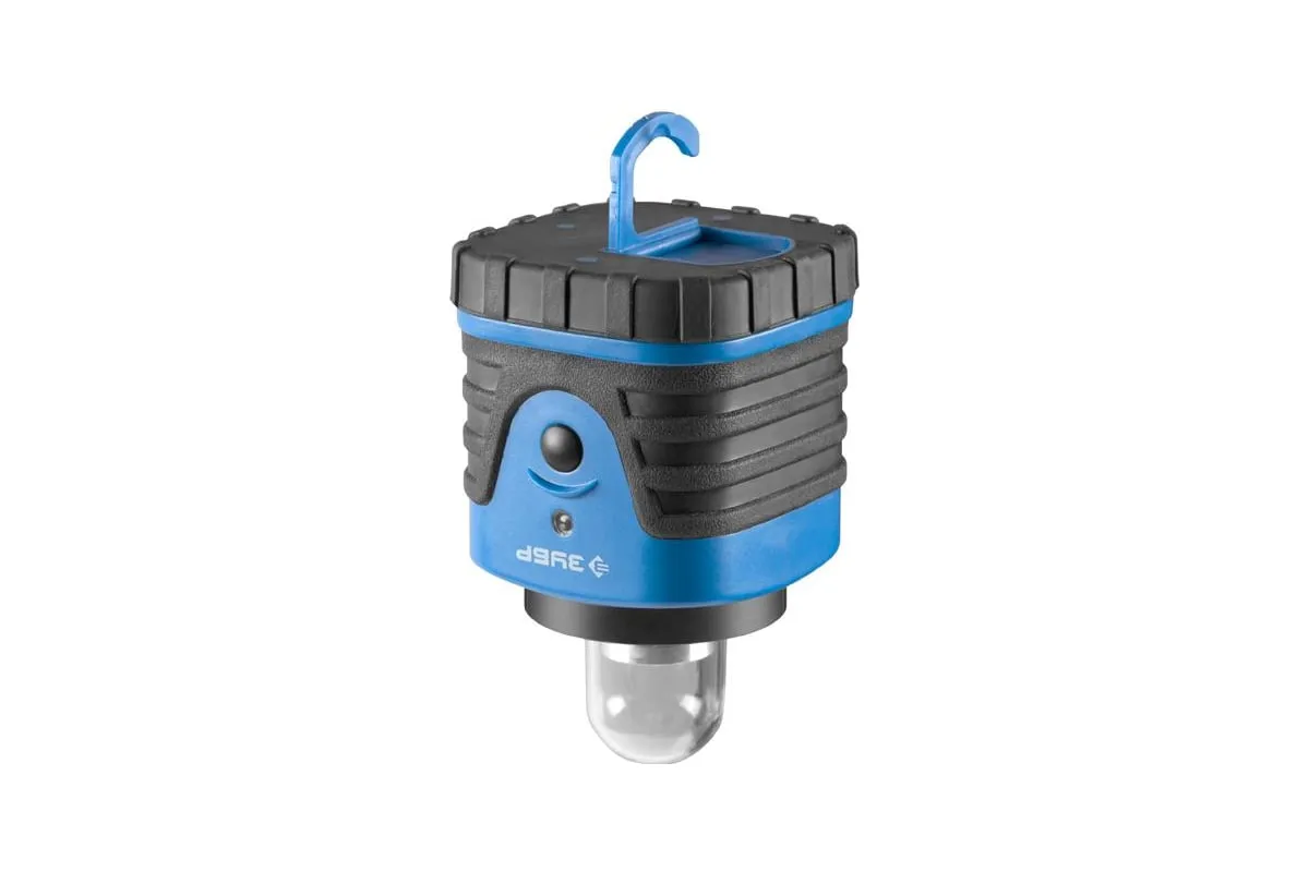 Кемпинговый светодиодный светильник Зубр 61830-300 выполнен из надежных материалов, устойчив к ударам и падениям, идеально подходит для активного отдыха на природе. Светильник станет идеальным помощником для подсвечивания походного лагеря, палатки, рыбацкого мостика, темной тропинки и пр. Изделие имеет удобную ручку для переноски. На основании предусмотрен раскладной крючок для возможности подвешивания светильника под куполом палатки на сучке дерева и т.д.