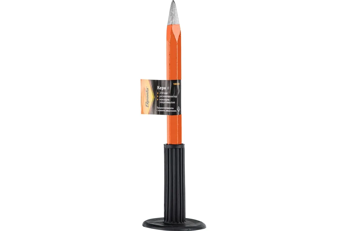 Керн Sparta 188305 длиной 250 мм — ударно-режущий инструмент, применяемый совместно с молотком или киянкой. Предназначен для накернивания кирпича, камня, бетона и цемента, пригодится во время строительных и ремонтных работ.