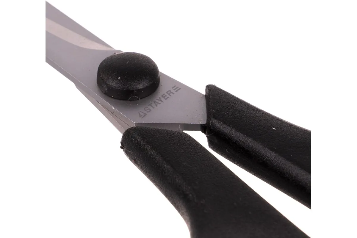 Хозяйственные ножницы, 135мм STAYER MASTER 40465-13 используются для разрезания таких материалов как: бумага, картон, ткань или кожа. Лезвия изготовлены из прочной нержавеющей стали, режущие кромки закаленны и заточены. Удобные ручки из ударопрочного пластика имеют мягкие резиновые вставки, которые обеспечивают комфортную работу и надежный захват.