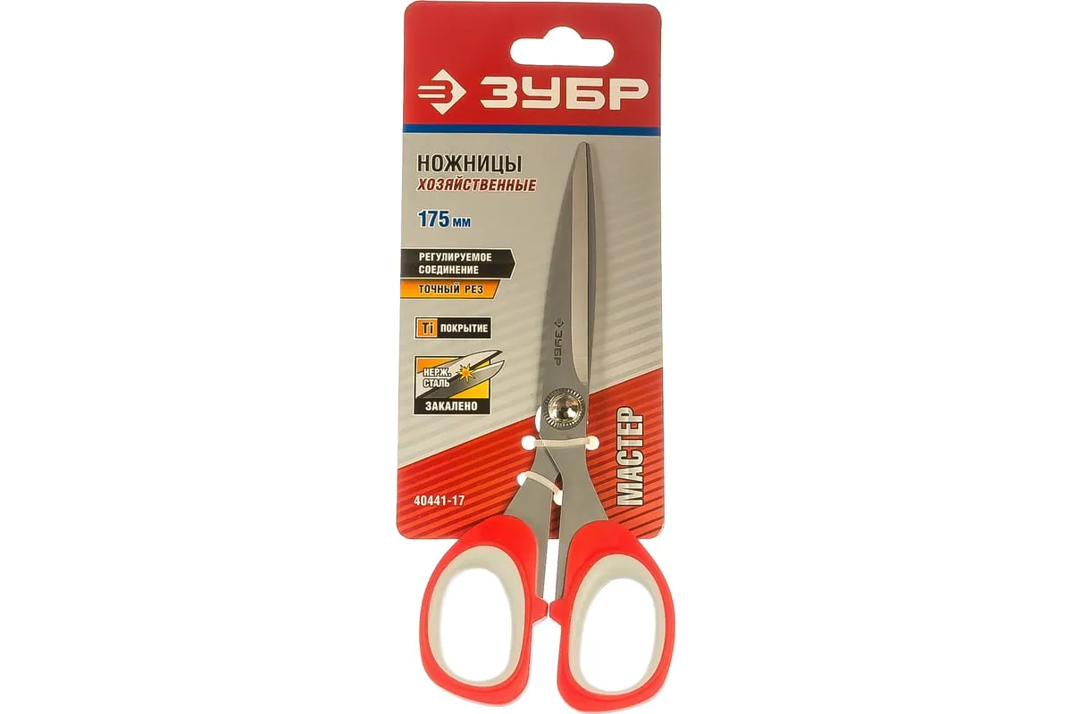 Хозяйственные ножницы 175мм ЗУБР МАСТЕР 40441-17 предназначены для разрезания тонких материалов: бумаги, картона, плёнки. Нержавеющая сталь, из которой изготовлен инструмент, препятствует появлению коррозии и увеличивает срок службы. Рукоятки сделаны из двухкомпонентного материала, что делает работу более комфортной.