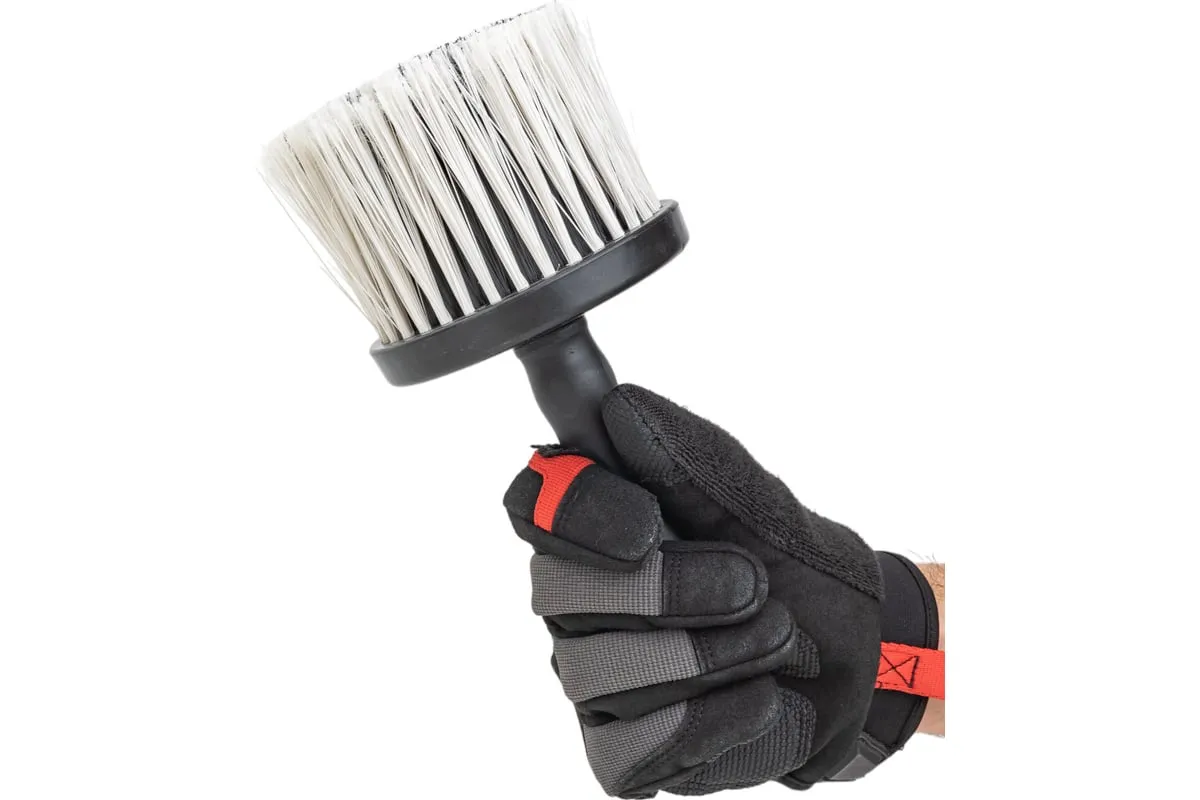 Кисть-макловица STARTUL Profi круглая, 110 мм ST0134-110 применяется для окрашивания поверхностей большой площади, при обработке фасадов и потолков, для нанесения на стены грунтовок, красок, пропиток, клеевых составов, для размыва старых лакокрасочных покрытий, для окрашивания окон, плинтусов, наличников, дверей, ровных и профильных основ, подклейки обоев. Кисть обеспечивают повышенный забор материала и его равномерное распределение. Жесткая искусственная щетина из полиэфирных волокон устойчива к ЛКМ на водной основе и подходит для окрашивания водоэмульсионными красками. Обладает повышенной износостойкостью и не теряет упругость при взаимодействии с водорастворимыми лакокрасочными материалами. Щетина расщеплена на конце на удобства работы. Щетина надежно впрессована в пластмассовый корпус круглой формы. Съемная пластмассовая ручка, имеет отверстие для подвешивания, а также специальное приспособление для крепления на емкость.