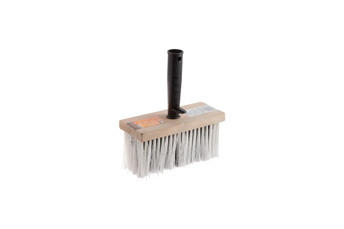 Щетина расщеплена на конце и надежно впрессована в деревянный корпус прямоугольной формы. Съемная пластмассовая ручка имеет отверстие для подвешивания, а также специальное приспособление для крепления на емкость.
