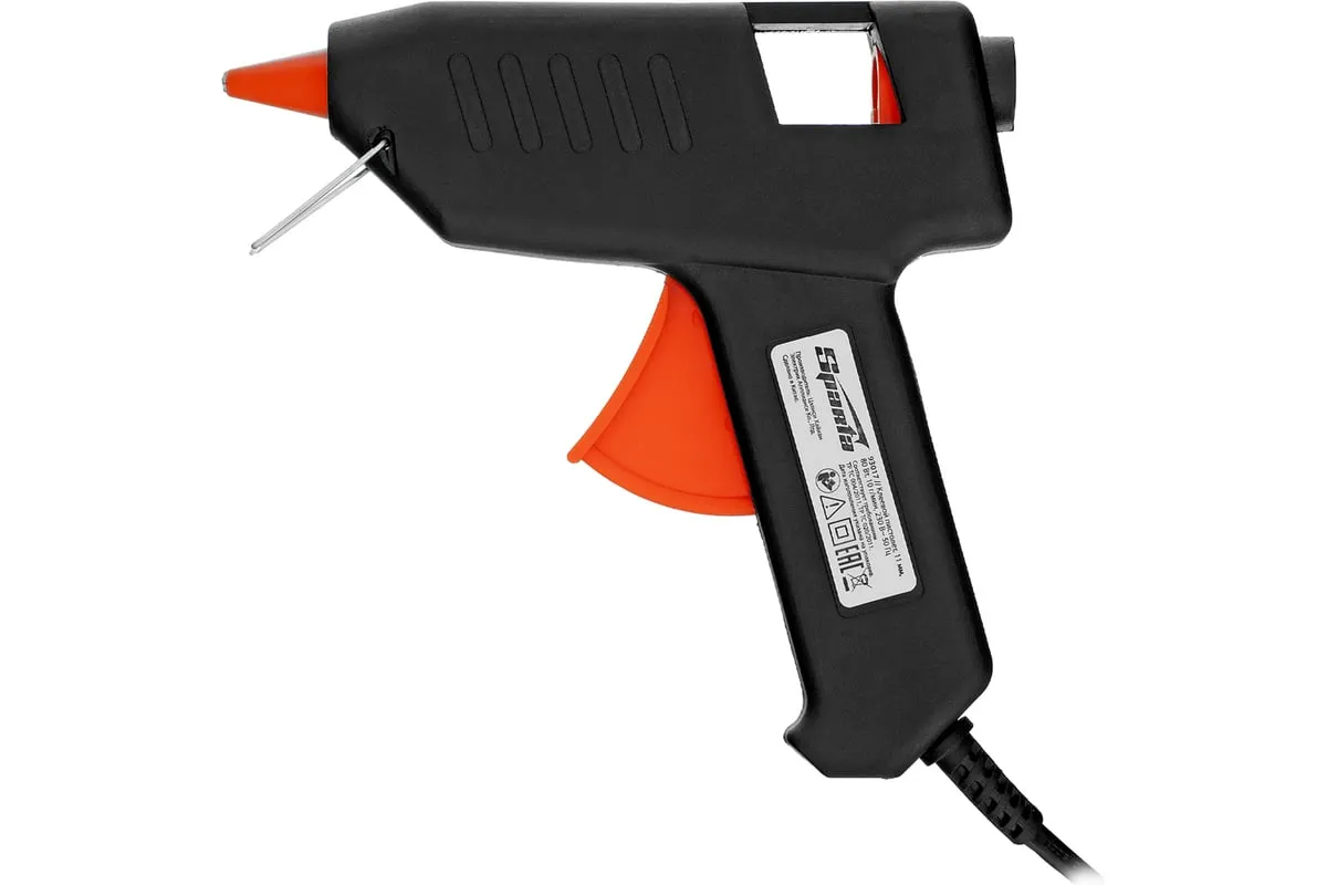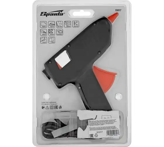 Клеевой пистолет Sparta 93017 мощностью 80 Вт расходует 10 г клея в минуту и совместим со стержнями диаметром 11 мм. Предназначен для склеивания различных деталей из бумаги, ткани, древесины, пластика и других материалов. Клеевой пистолет применяется для рукоделия, мелкого ремонта, упаковки, оптимален для бытового использования.