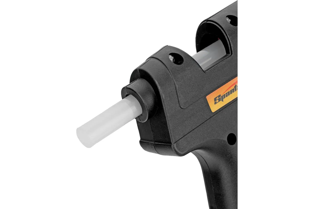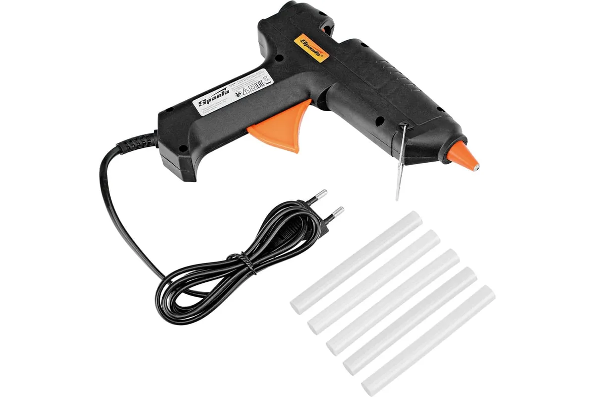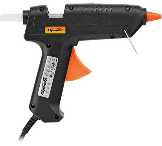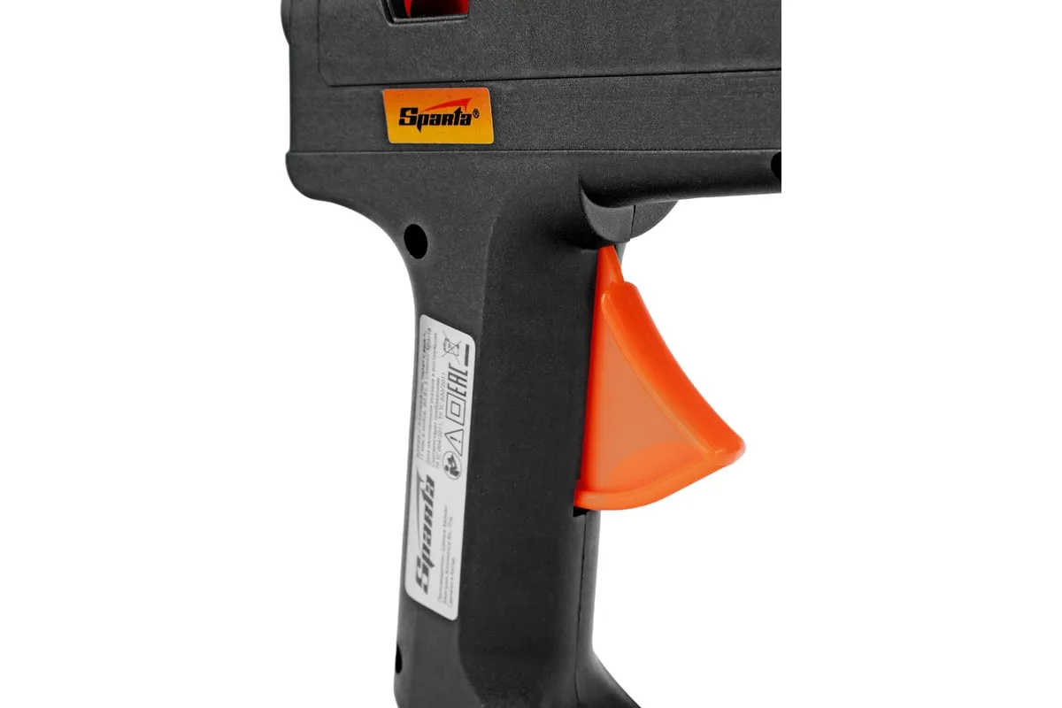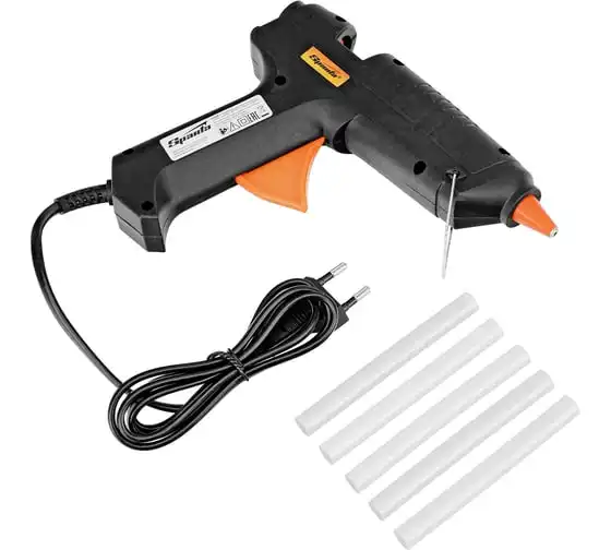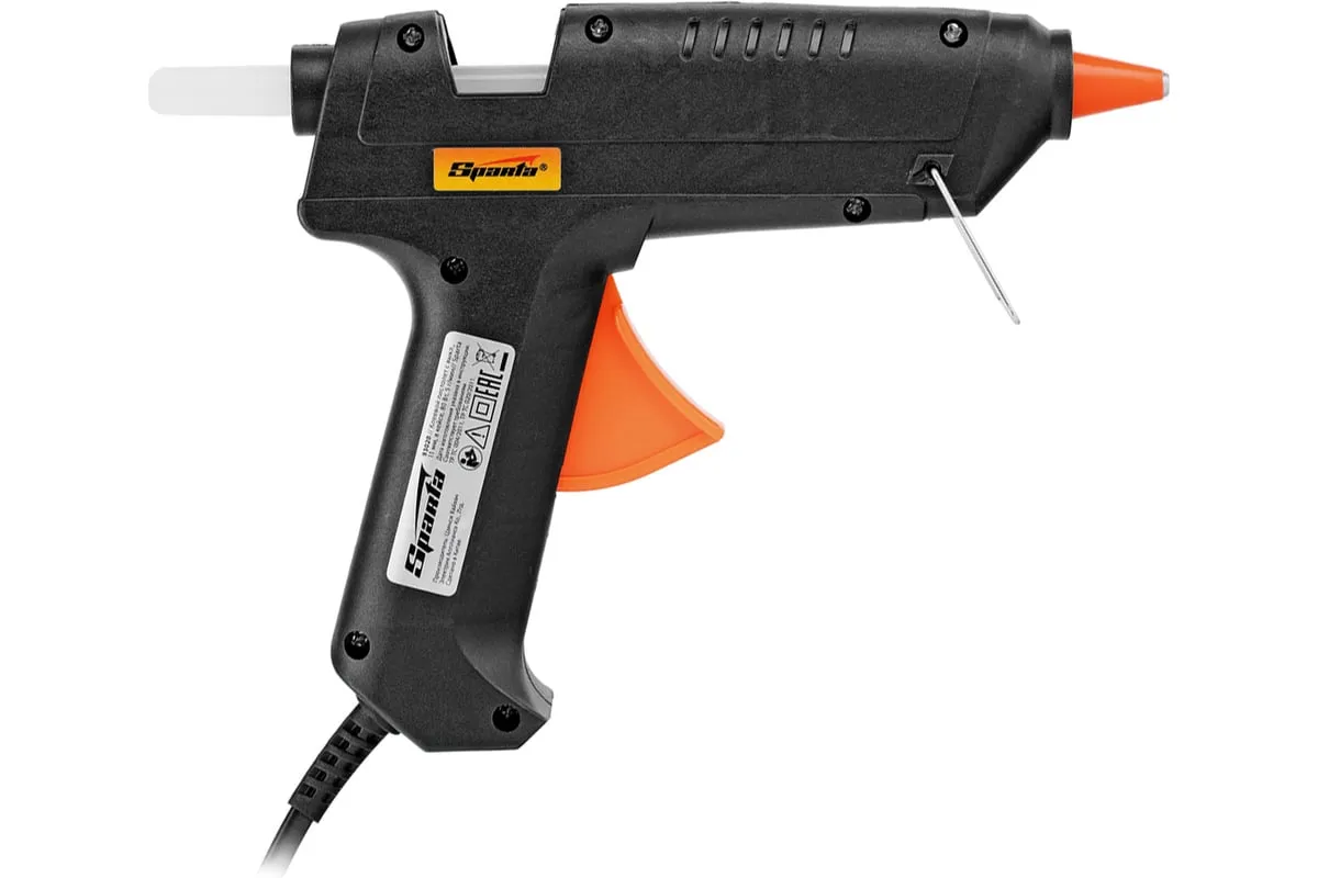 Клеевой пистолет с выключателем Sparta 93020 мощностью 80 Вт и производительностью 10 г/мин совместим со стержнями диаметром 11 мм и поставляется в кейсе. Пригодится для проведения несложных бытовых работ: склеивания бумаги, древесины, пластика и других материалов. Время нагрева до максимальной температуры не превышает 5,5 минут. Пистолет незаменим для частных мастеров, которые занимаются мелким ремонтом, упаковкой, сборкой различных моделей и рукоделием.