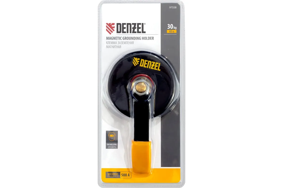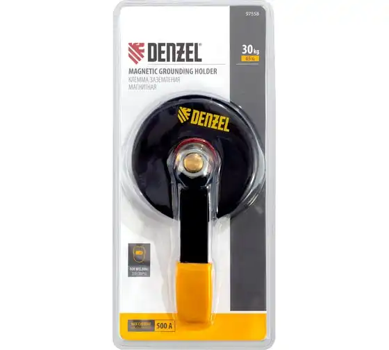 Магнитная клемма Denzel 97558, рассчитанная на усилие 65 LB (30 кг), предназначена для фиксации кабеля заземления на металлической поверхности и используется при проведении сварочных работ.